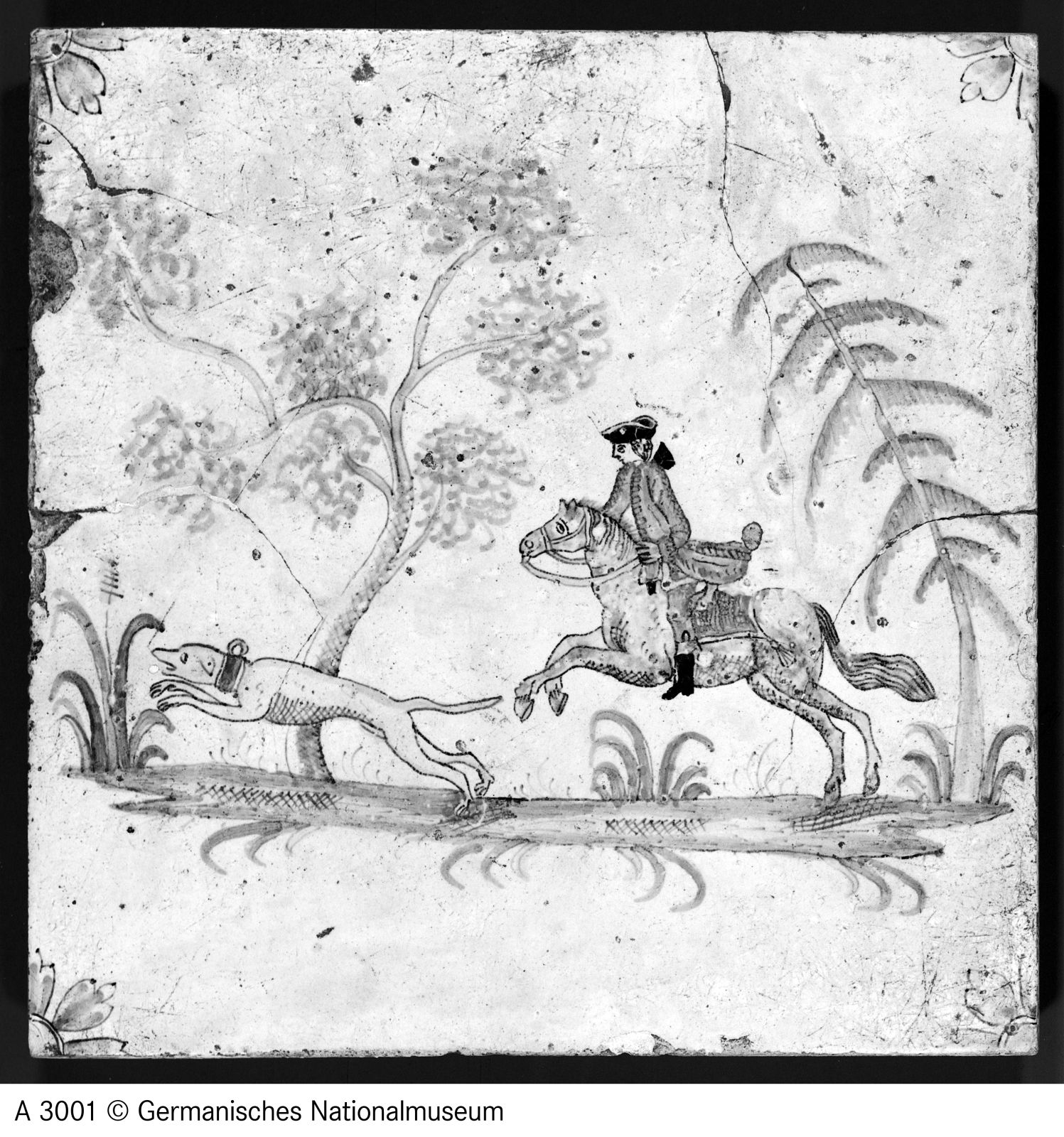 Ton, rötlich gebrannt, auf der Vorderseite mit weißer Zinnglasur überzogen