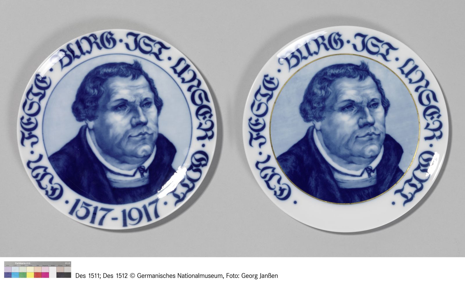 Porzellan, in Unterglasurblau bemalt; mit Aufhängelöcher im Standring