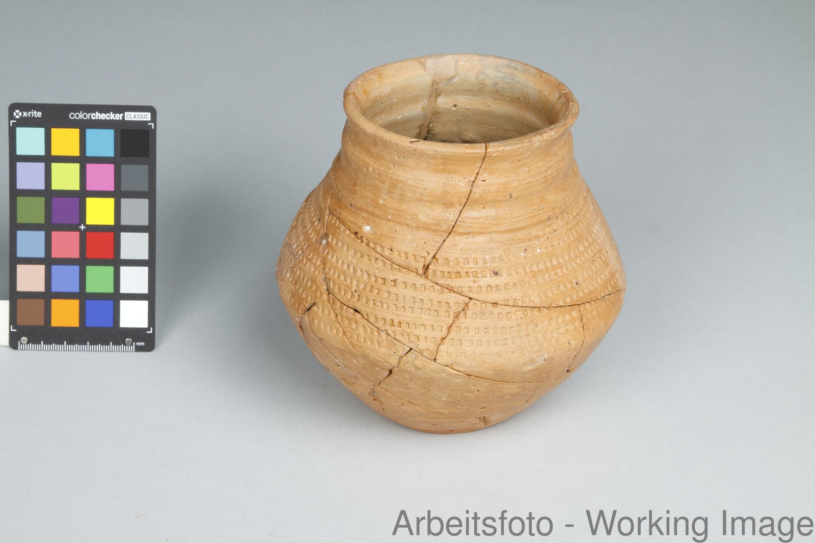 Keramik - scheibengedreht, oxydierend gebrannt, rollstempelverziert