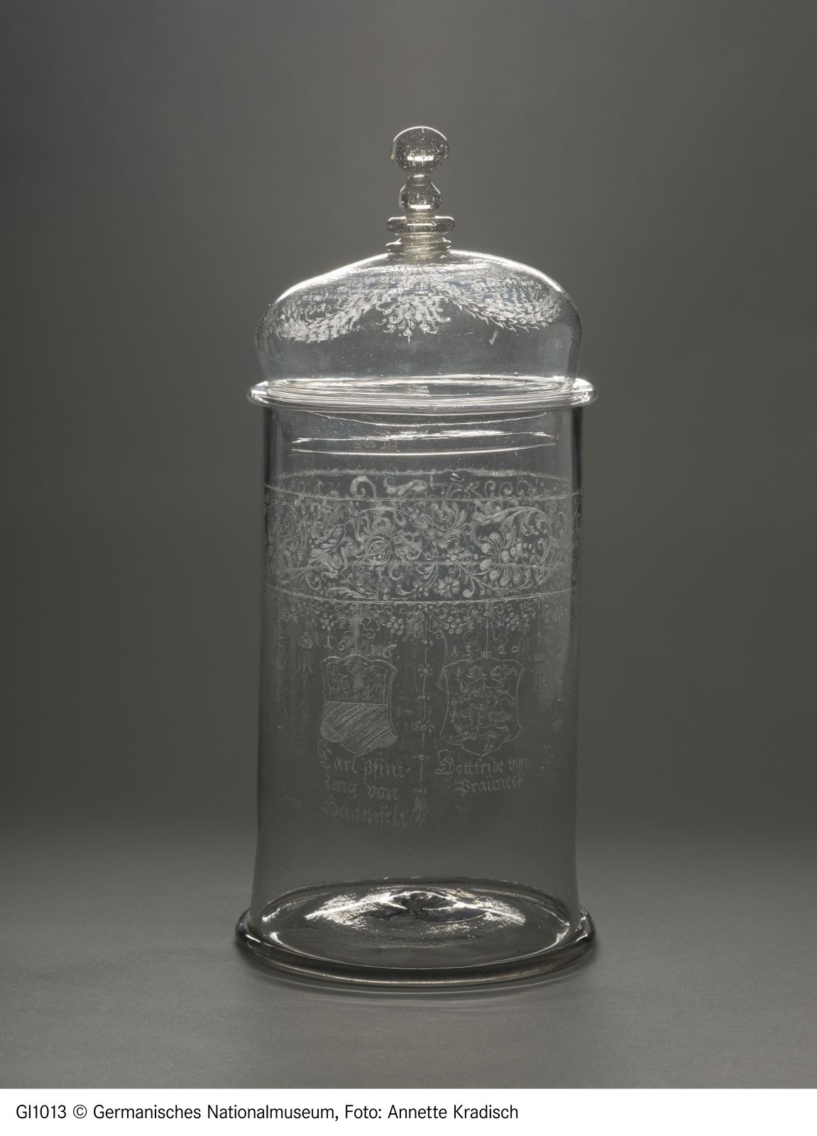 H. 19,1 cm; Dm. (oben) 10,8 cm; Dm. (unten) 12,7 cm