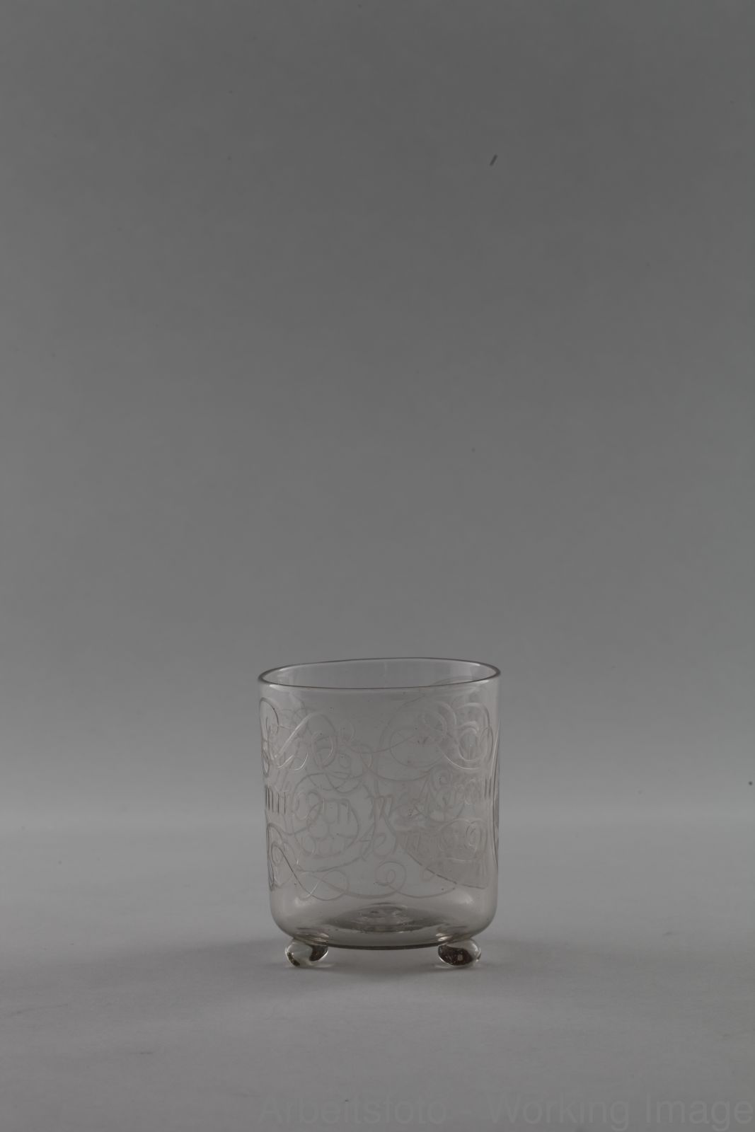 Becher aus Glas mit geschnittenen Darstellungen