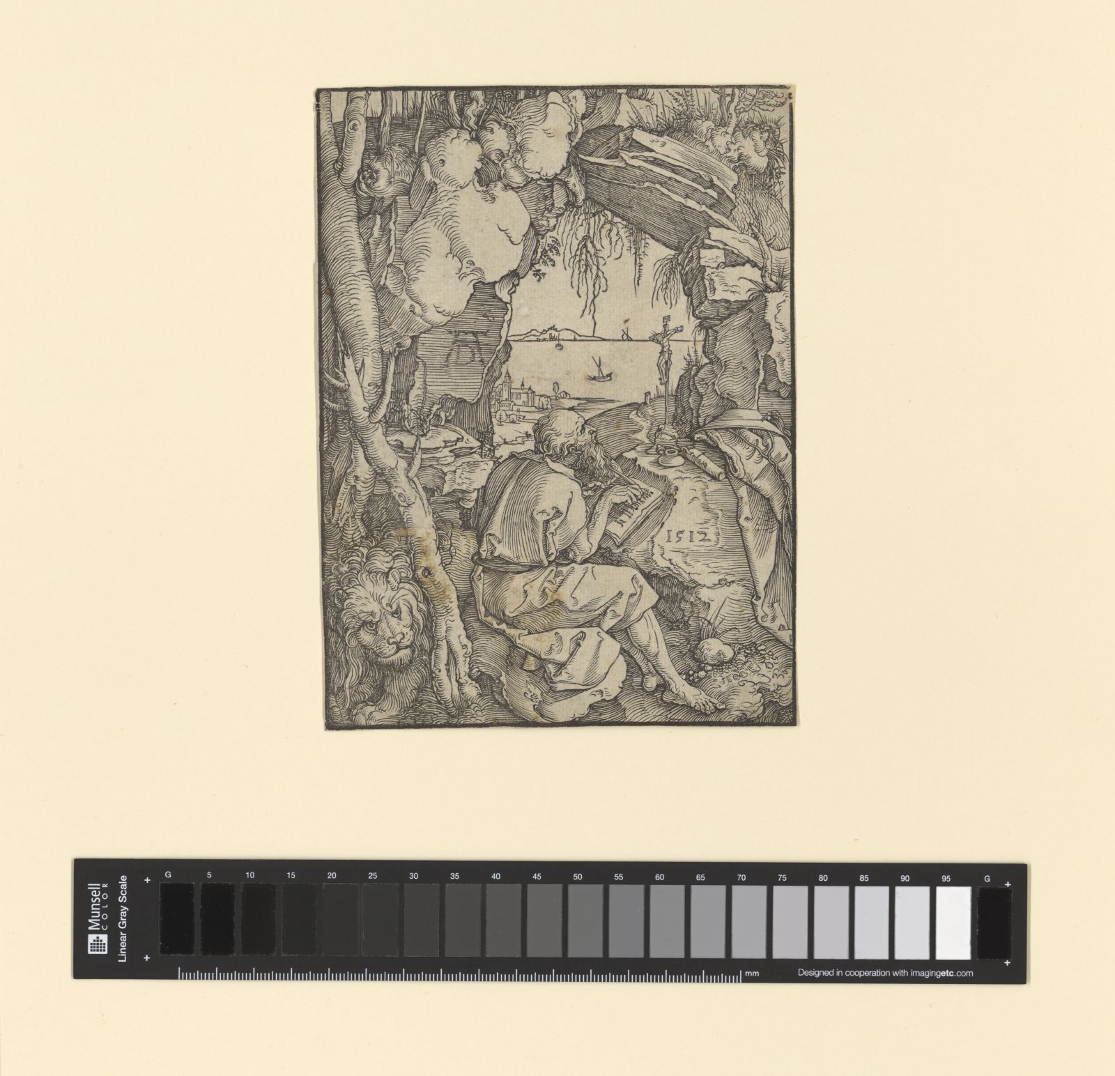 Buch · Eremit · Heiliger · Hieronymus (Heiliger) · Hut · Kardinalsinsignien · Kruzifix · Löwe · Religion · Sanduhr · Stein · Stundenglas · Totenschädel · christliche Religion · übernatürlich