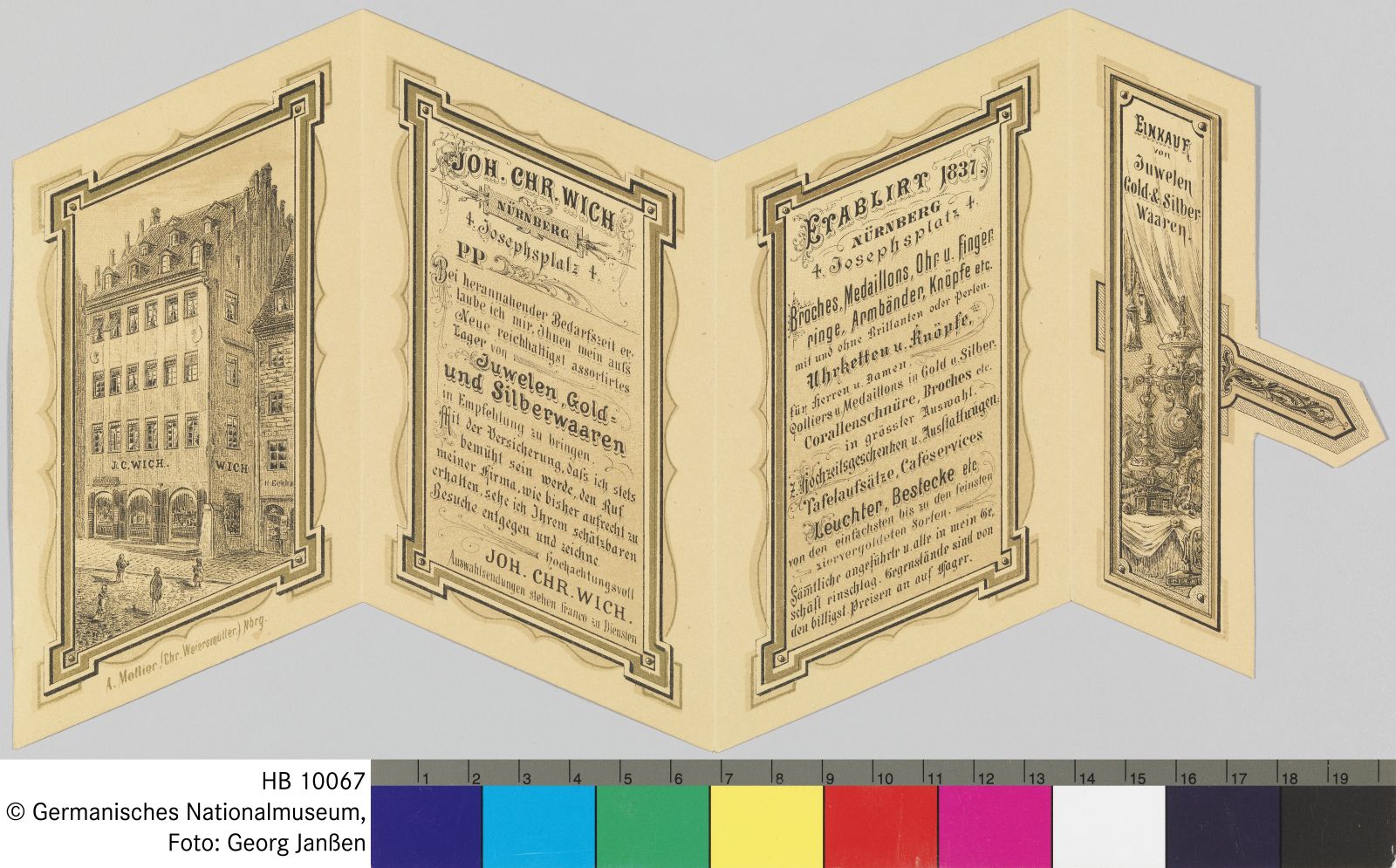 Werbekarte des Nürnberger Juweliers Johann Christian Wich