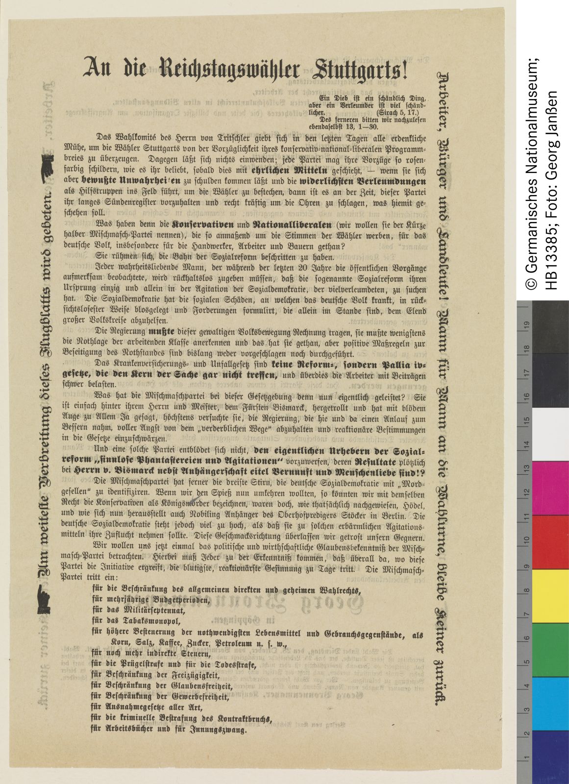 Flugblatt: Wahlaufruf zur Reichstagswahl für den // sozialdemokratischen Kandidaten Georg Bronnenmayer aus // Göppingen