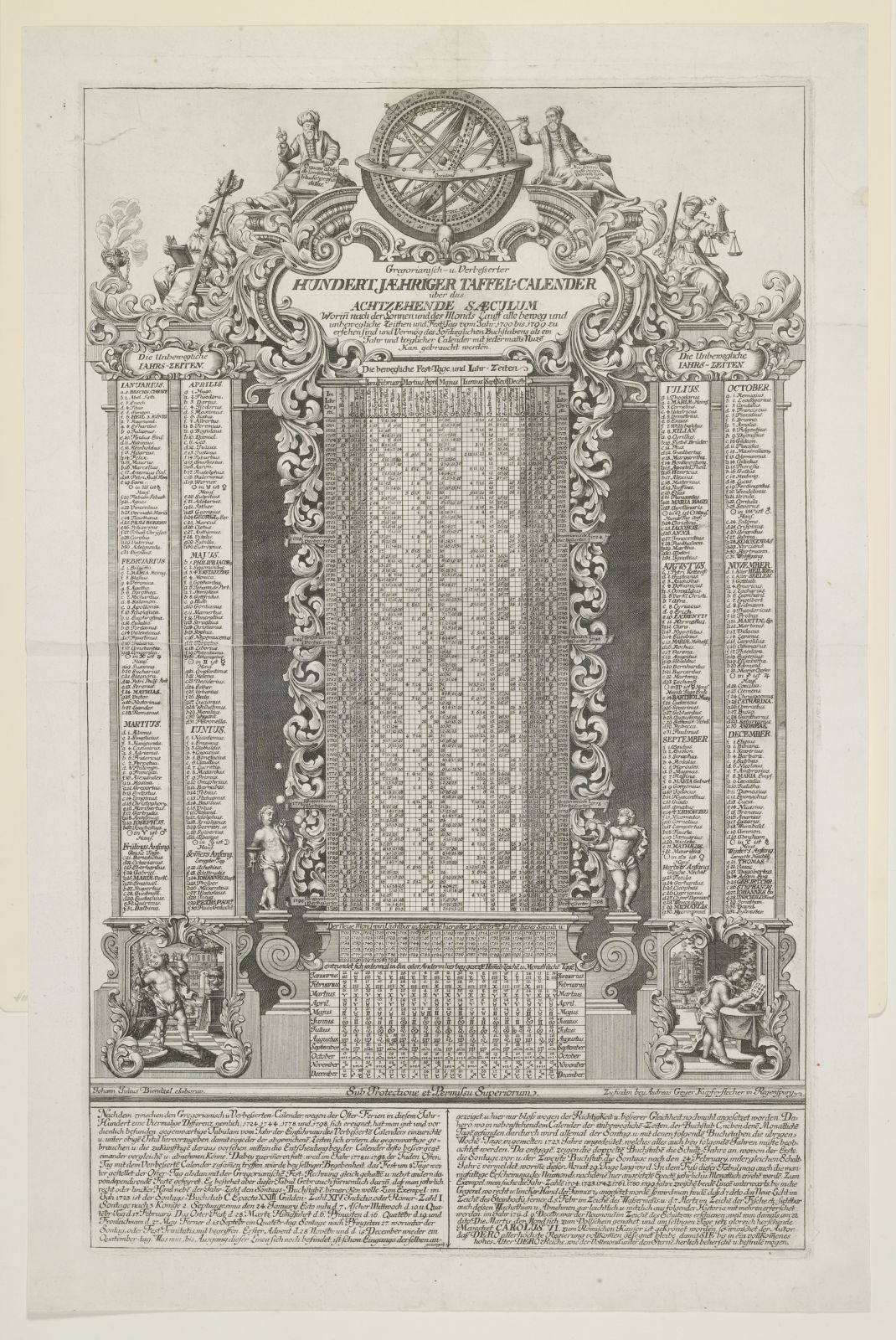 Gregorianisch- und verbesserter hundertjähriger // Tafelkalender über das achtzehnte saeculum