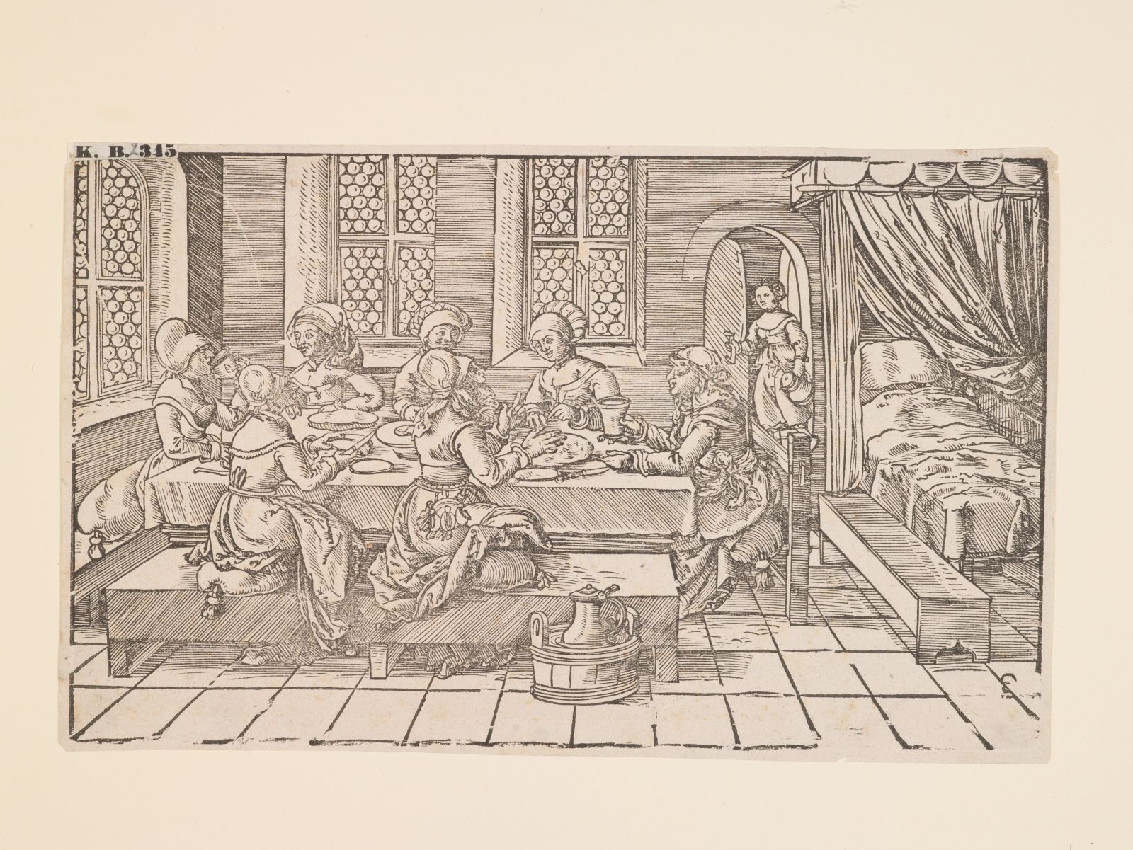 Geselliges Leben: Sog. Kindbettschmaus in einer Wochenstube