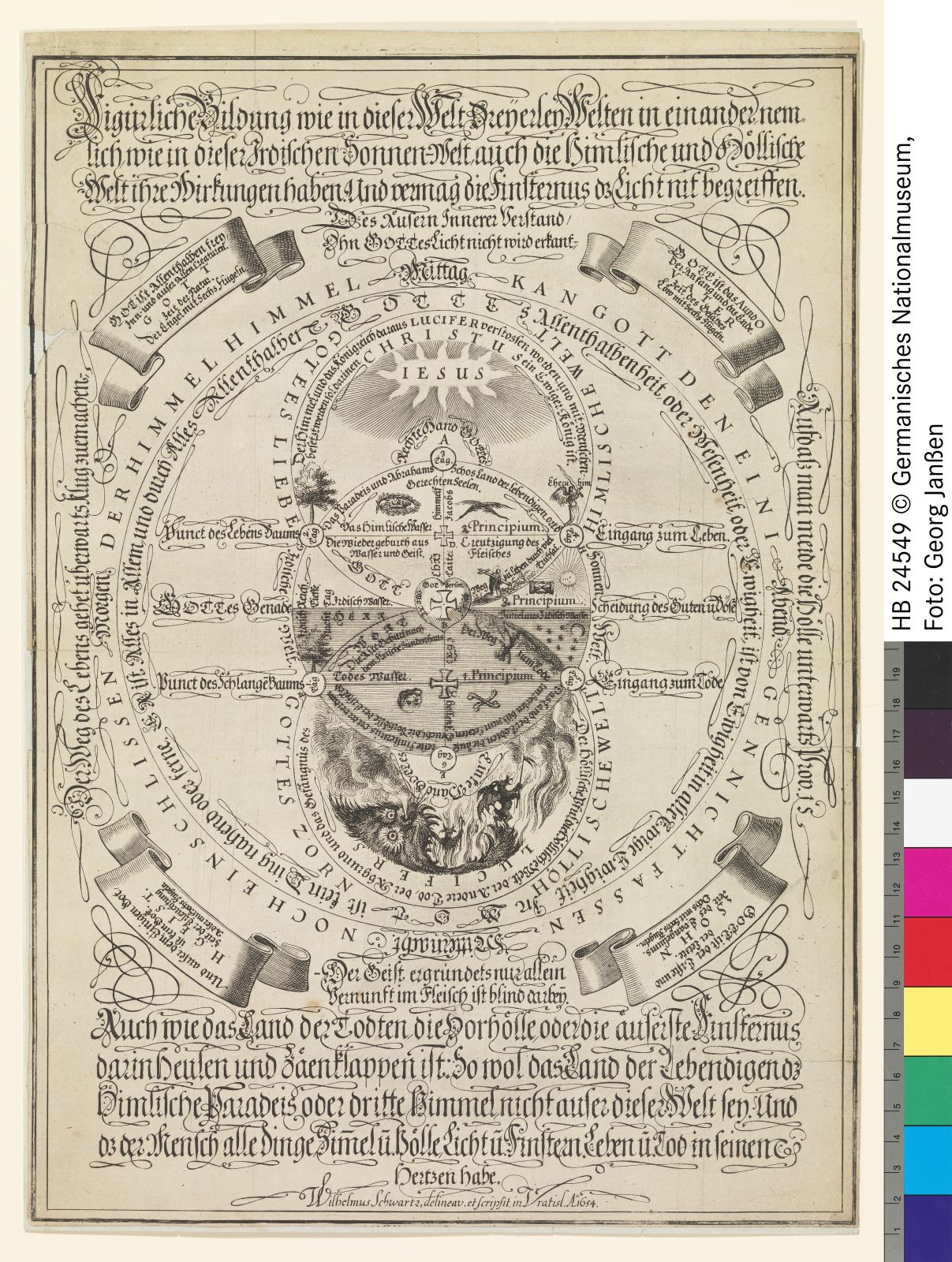 Symbolische Darstellung von Himmel, Welt und Hölle und // deren Zusammenhang