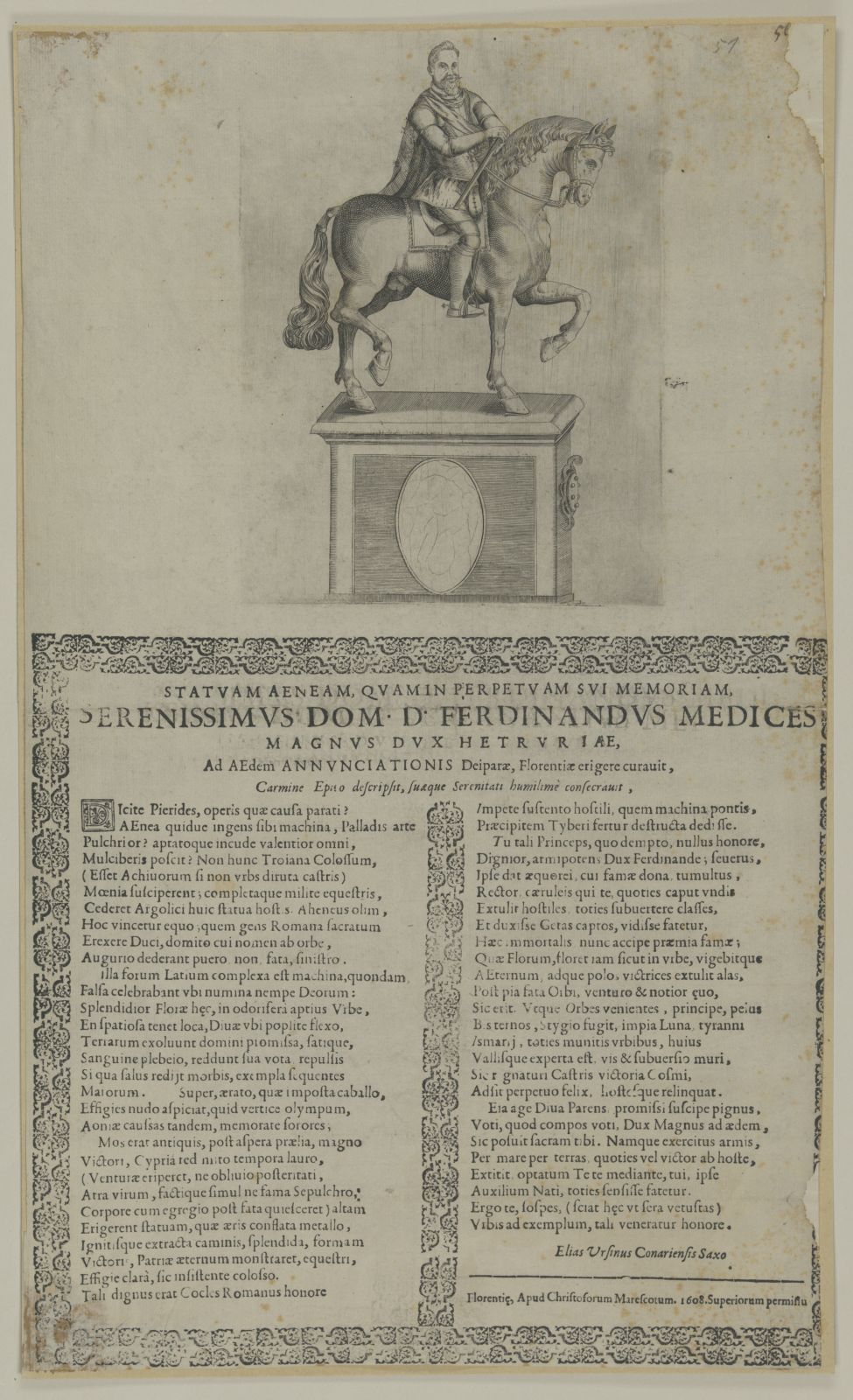 Gedenkblatt mit Reiterdenkmal des Ferdinando I. de' Medici