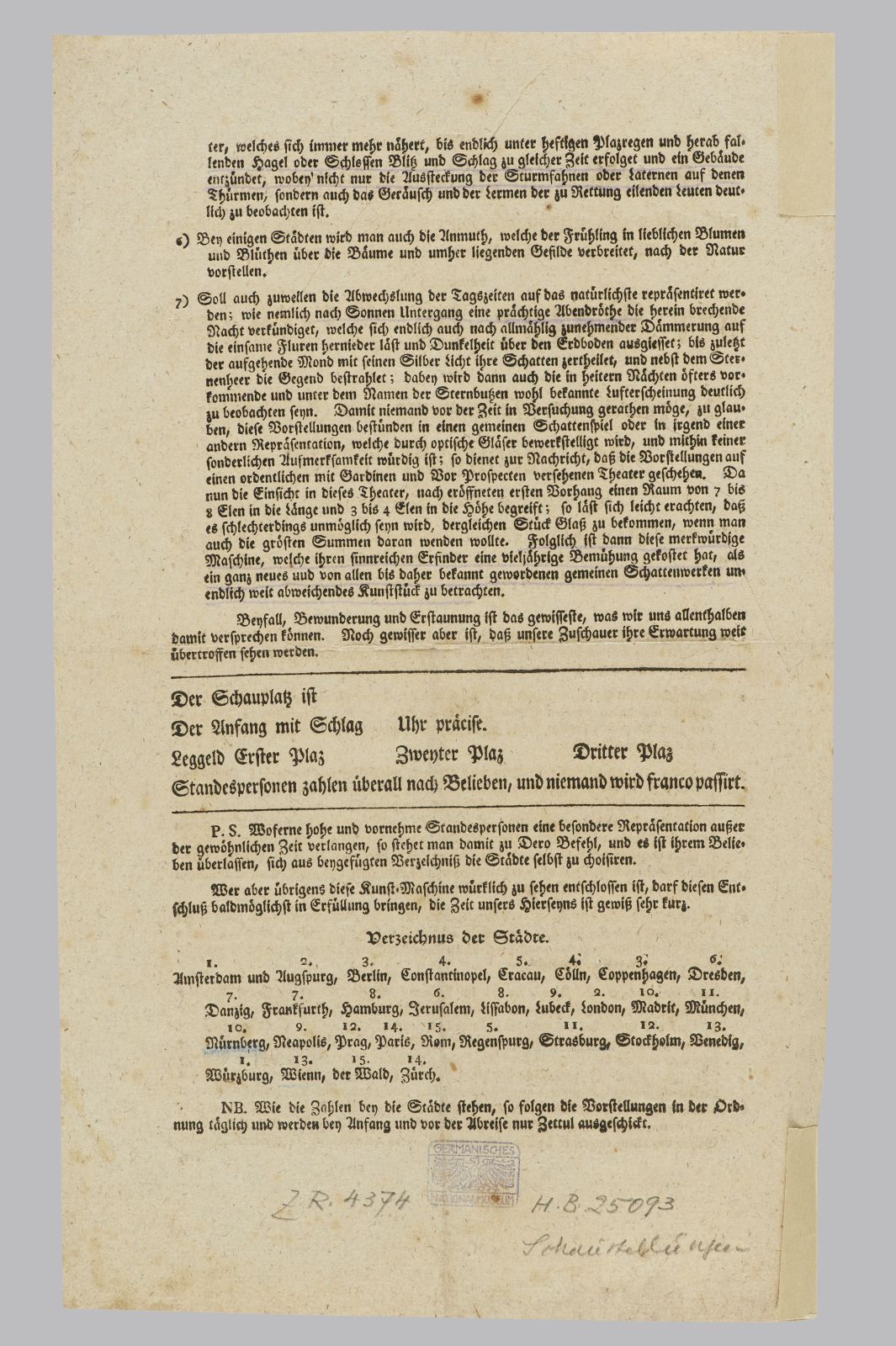 Ankündigung einer mechanischen Vorführung - "die Natur im // Kleinen"
