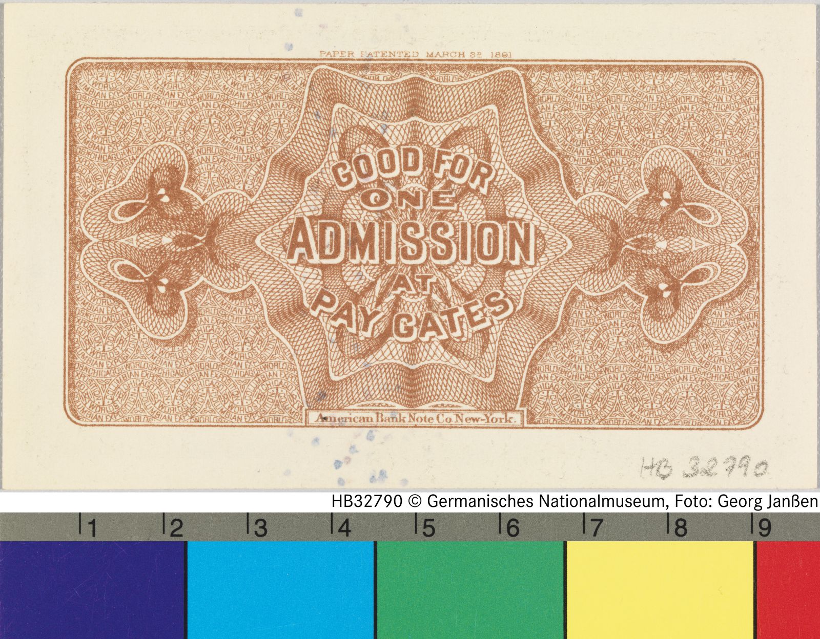 Eintrittskarte für die Weltausstellung in Chicago 1893