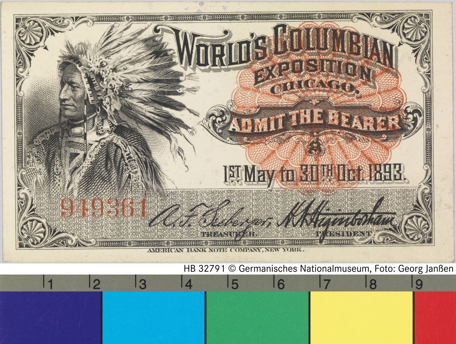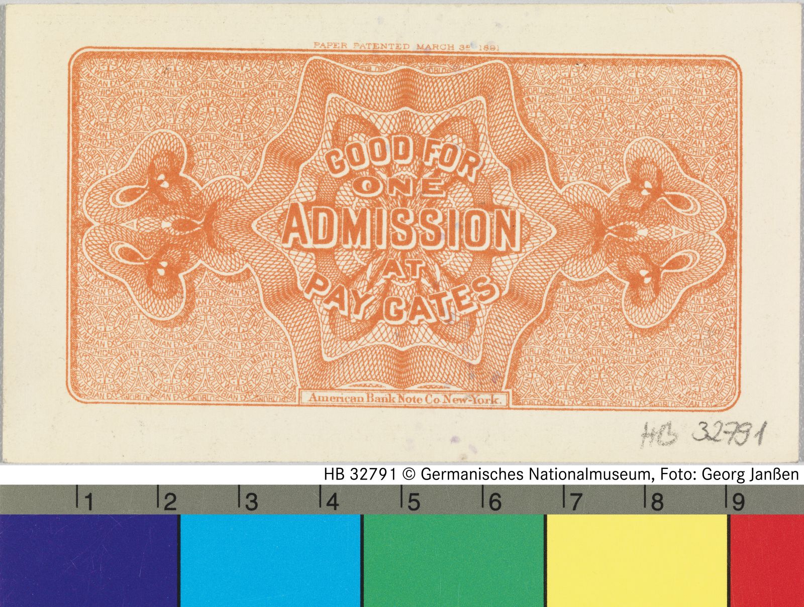 Eintrittskarte für die Weltausstellung in Chicago 1893
