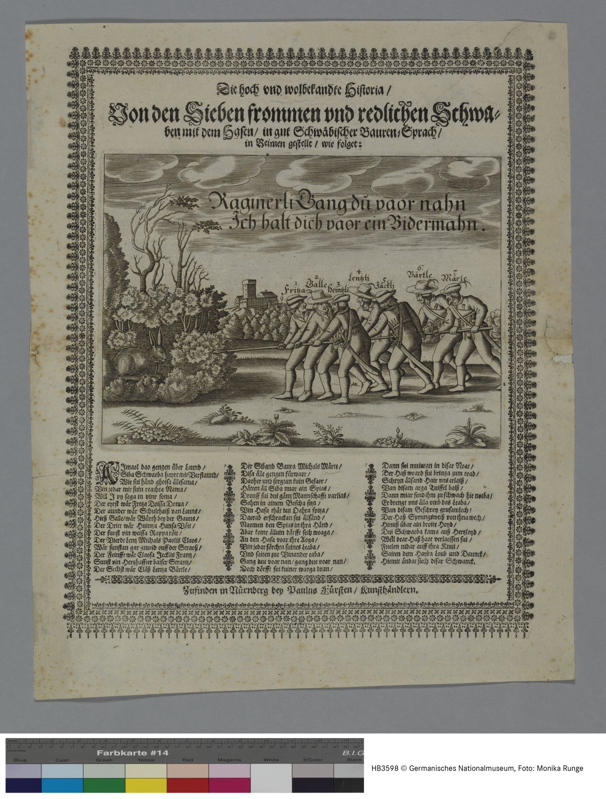 Flugblatt: Die hoch und wolbekandte Historia / // von den // Sieben frommen und redlichen Schwaben mit dem Hasen // (Titelincipit)