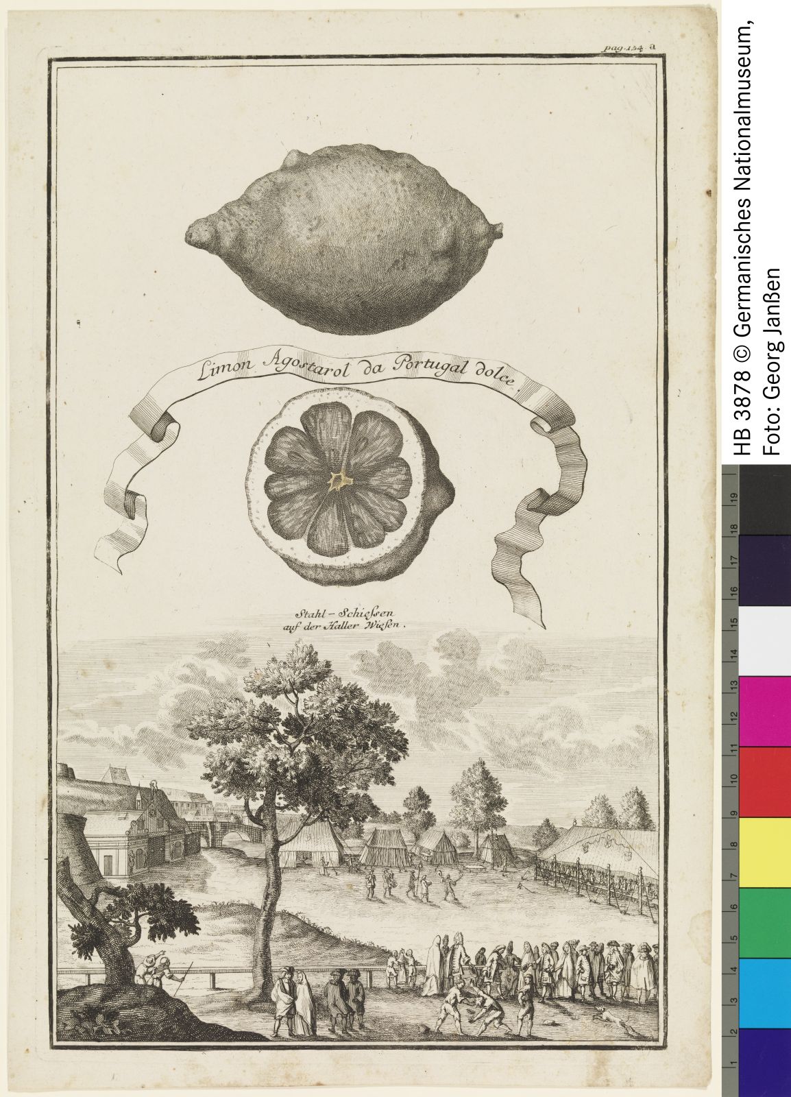 Nürnberg, Stahlschießen auf der Hallerwiese mit Zitrusfrucht