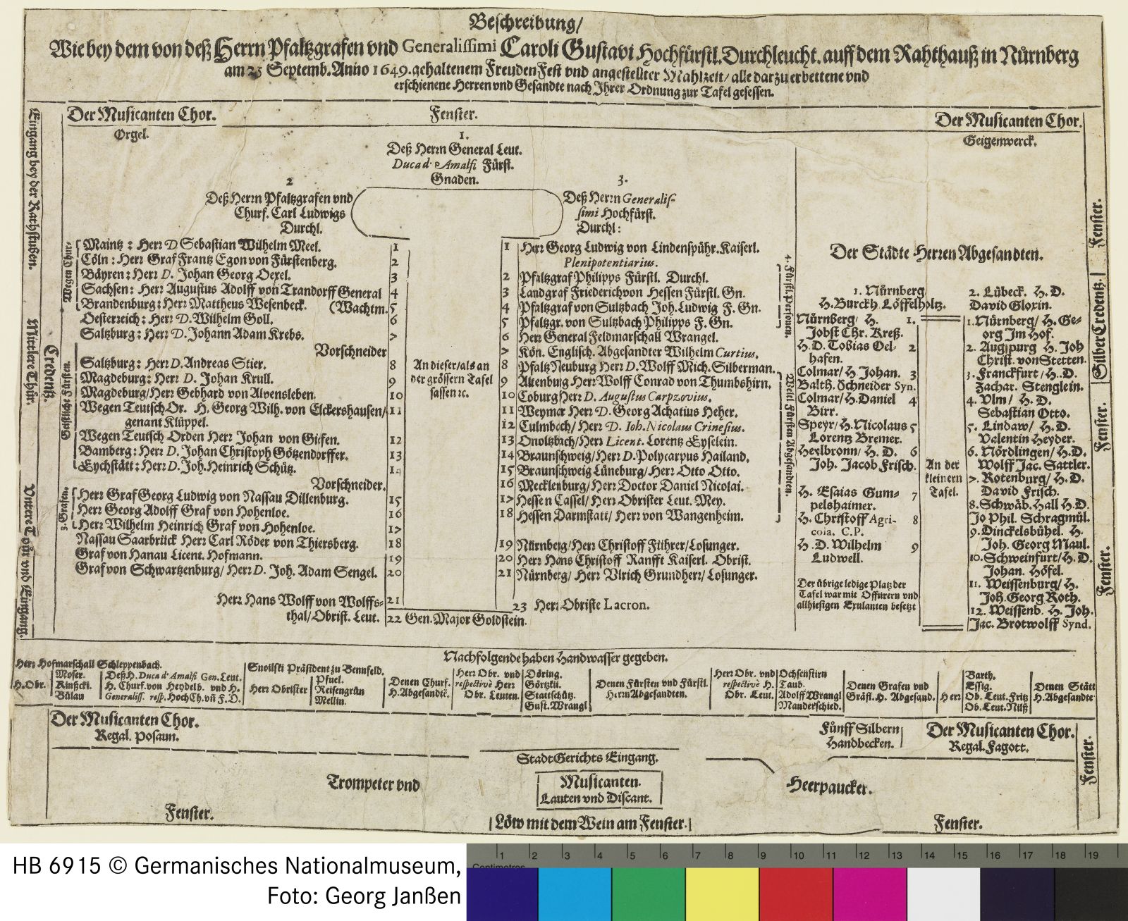 Tischordnung beim Mahl anläßlich des Friedens im Nürnberger // Rathaus 1649