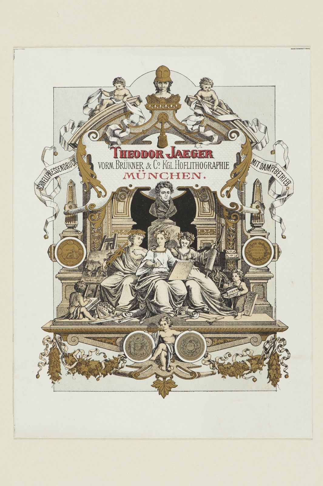 Geschäftskarte der Kgl. Hoflithographie Theodor Jaeger, vormals Brükner und Co., München