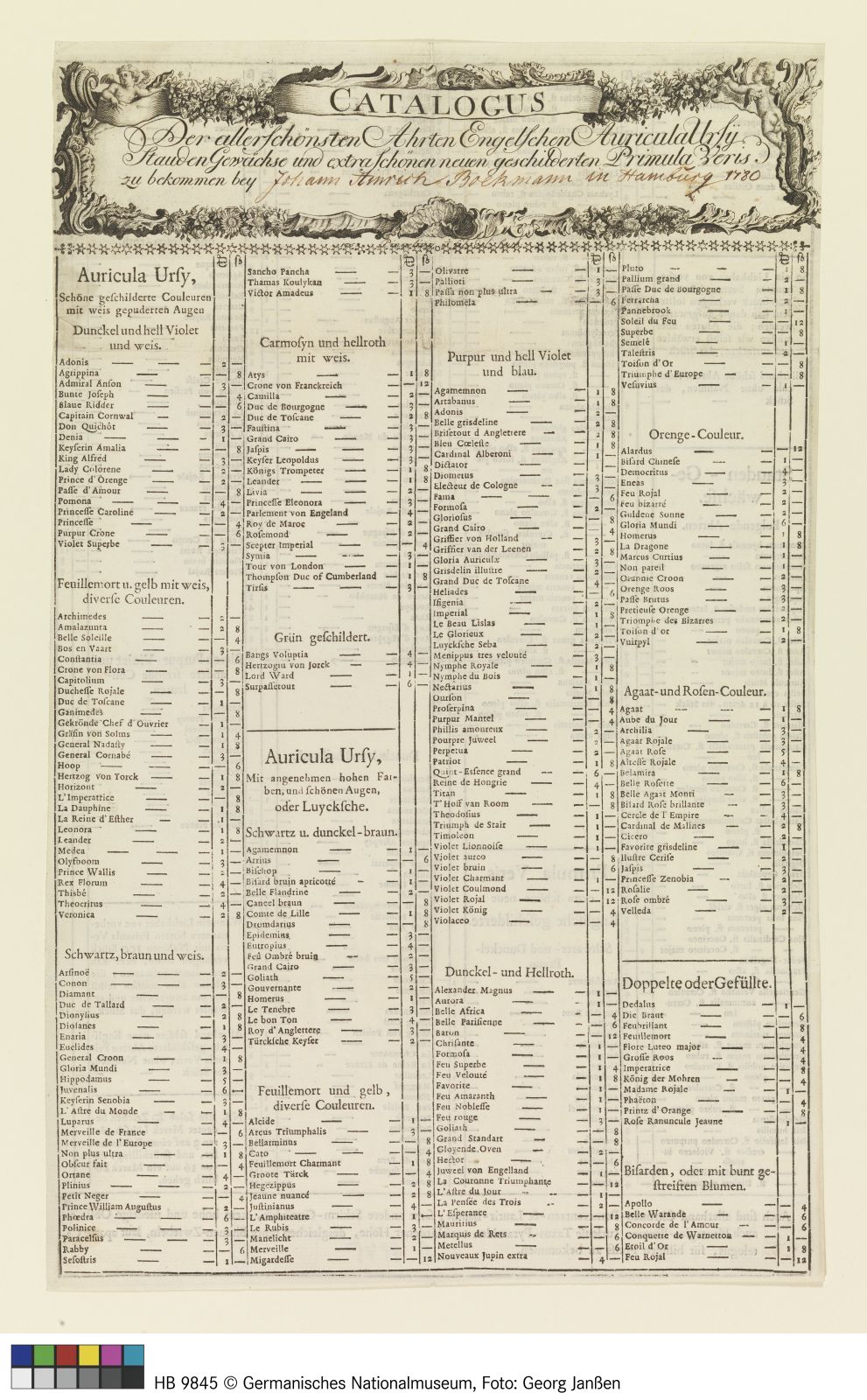 Pflanzenpreisliste von Bockmann in Hamburg
