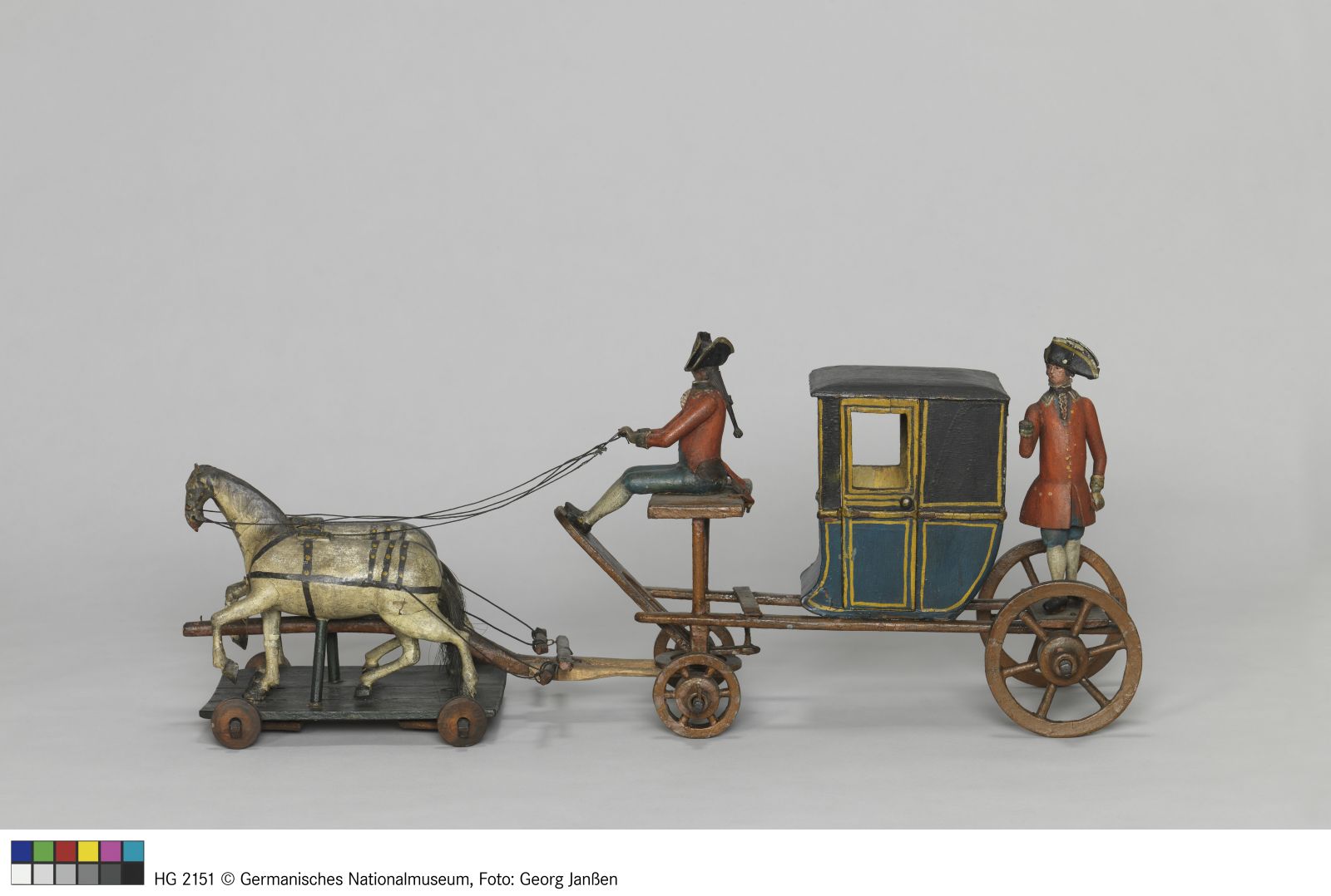 L. (Kutsche mit Deichsel) 67 cm; B. (Brett) 21 cm.