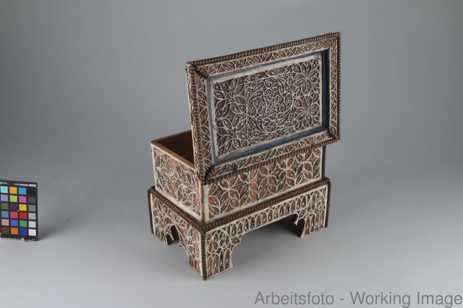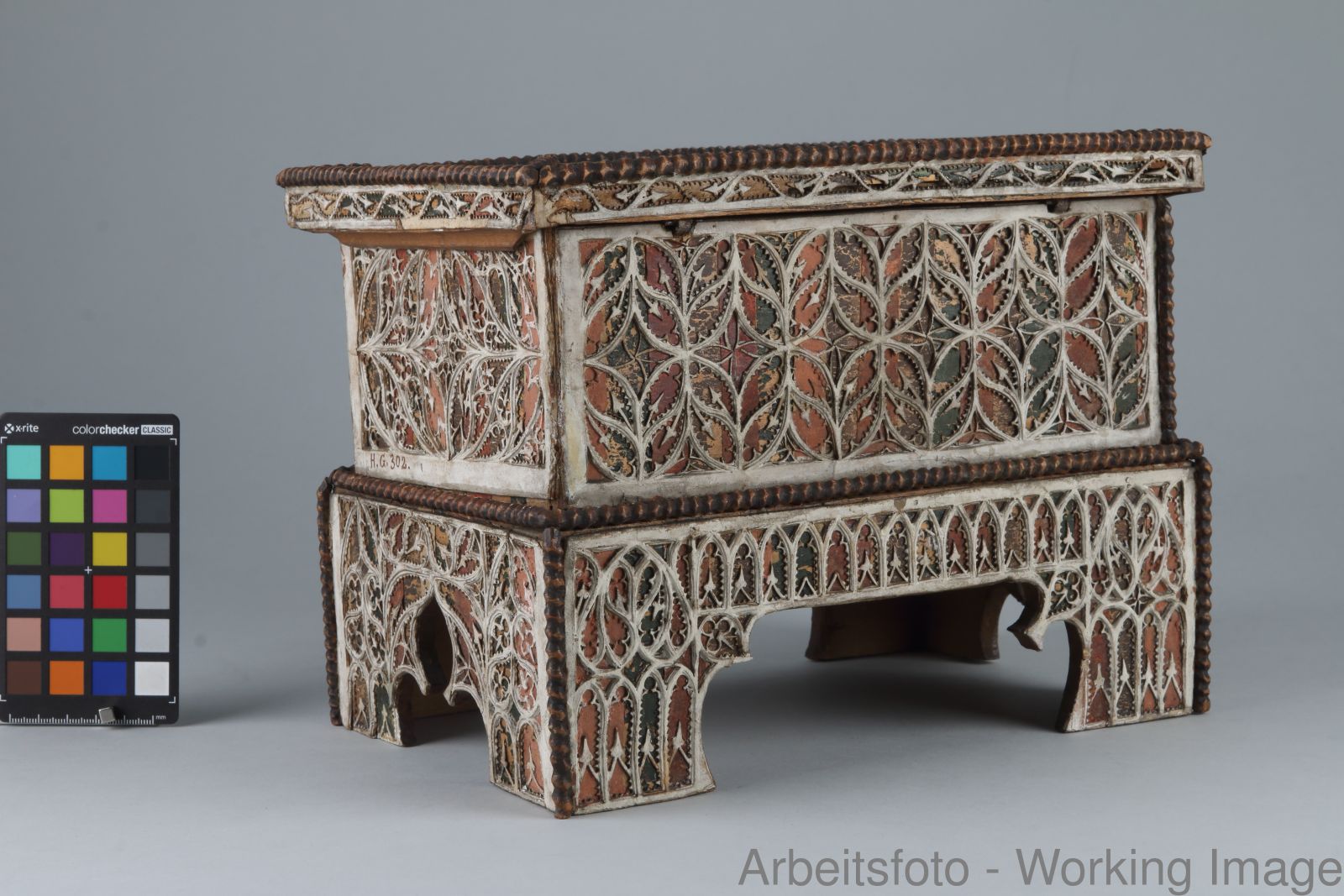 Miniaturtruhe mit Maßwerkdekor (Salzburg?, um 1500)