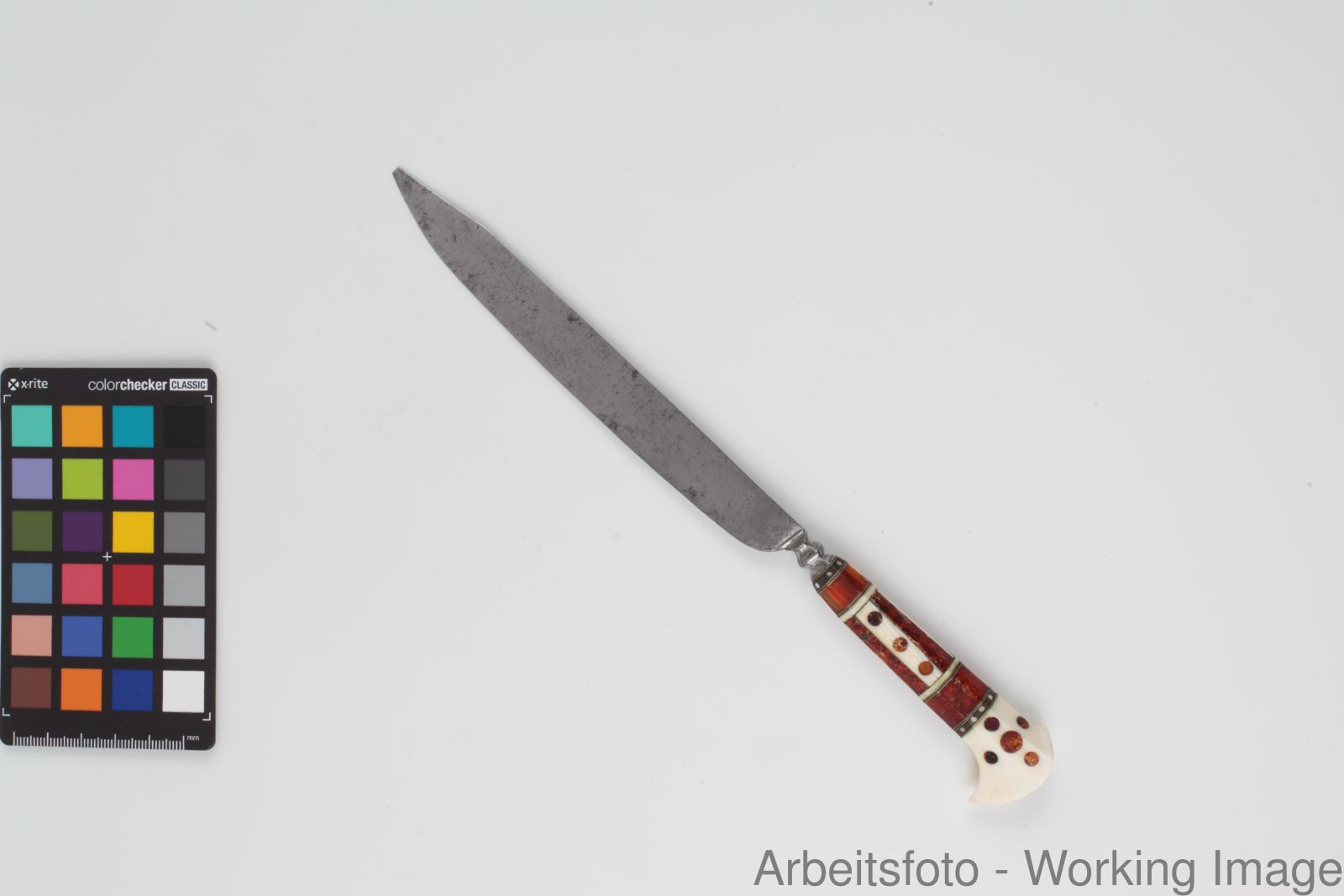 Eisen, geschmiedet; Elfenbein, Bernstein, Messing