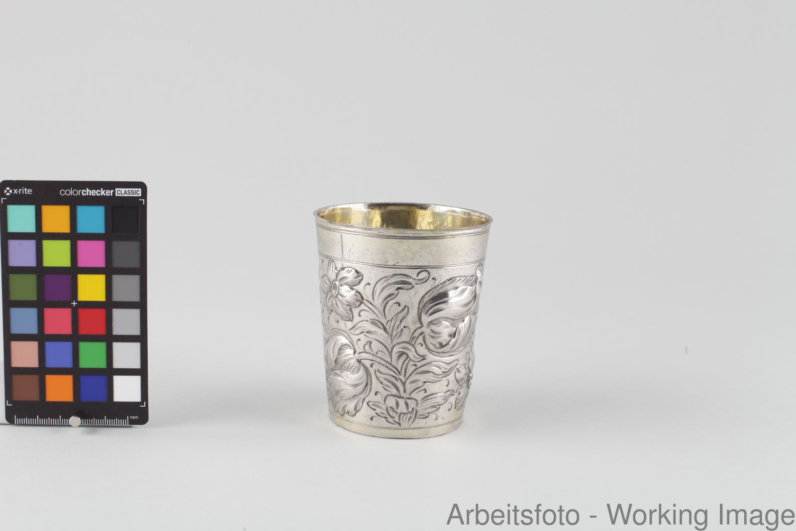 Silber, teilvergoldet, getrieben, ziseliert, graviert