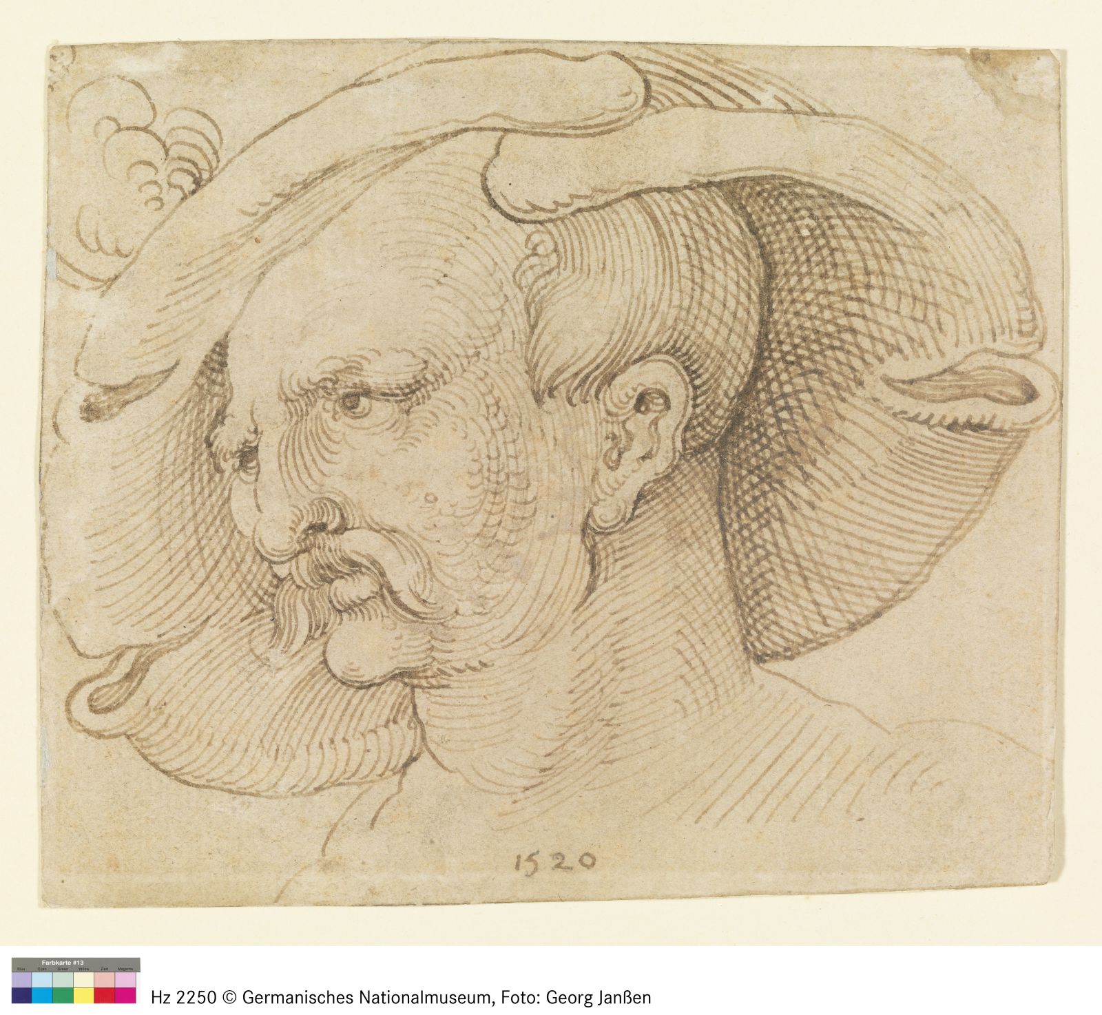 Kopf eines bärtigen Landsknechts