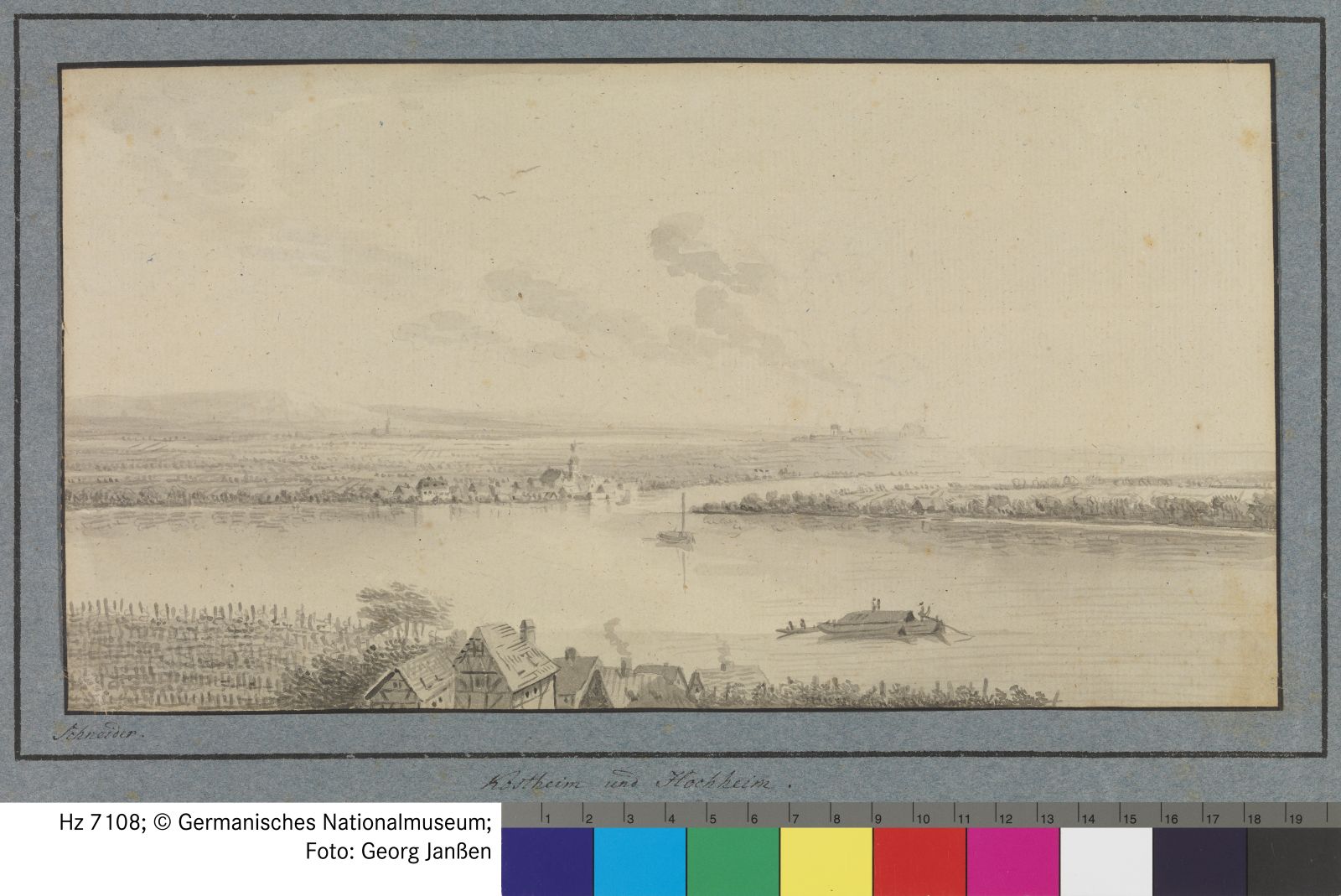 Pinsel in Grau auf leicht gelblichem Papier; alt montiert