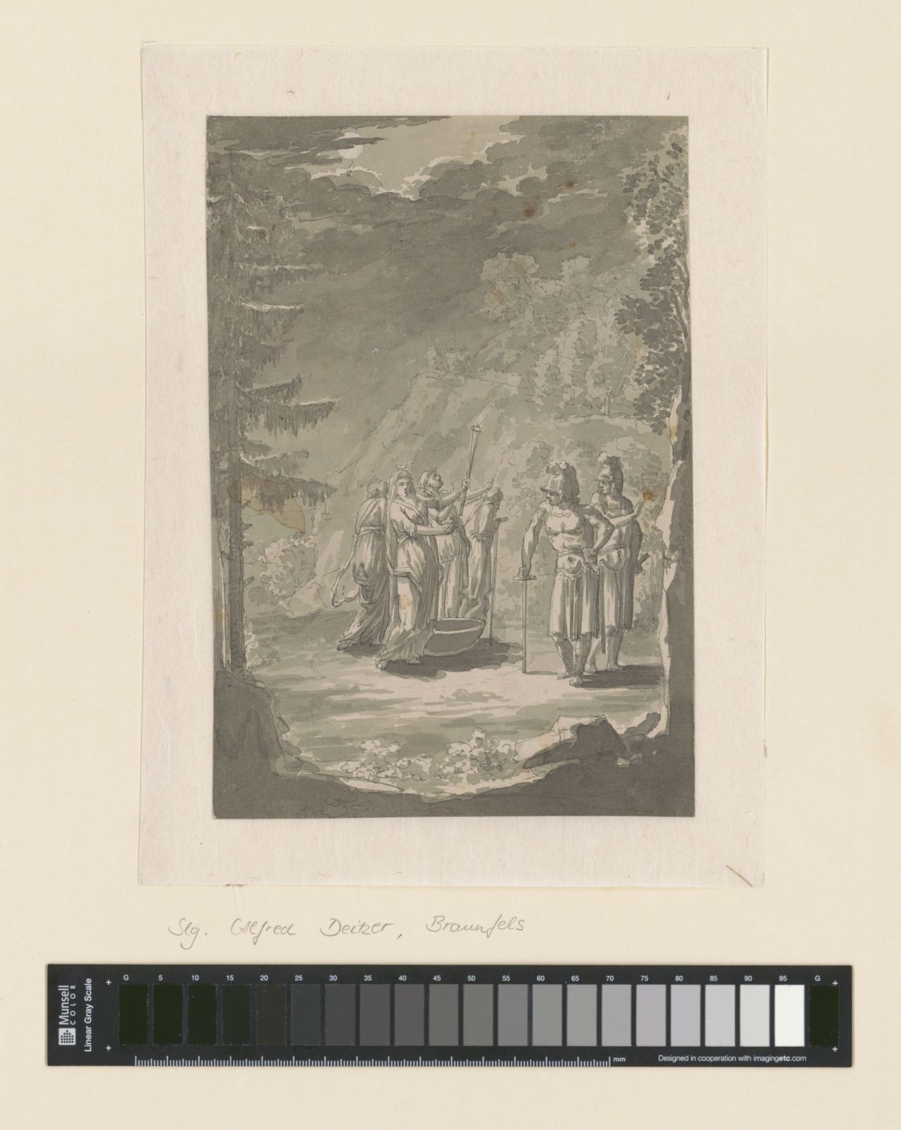 Feder in Schwarz, grau laviert, verso Graphitstift und Feder