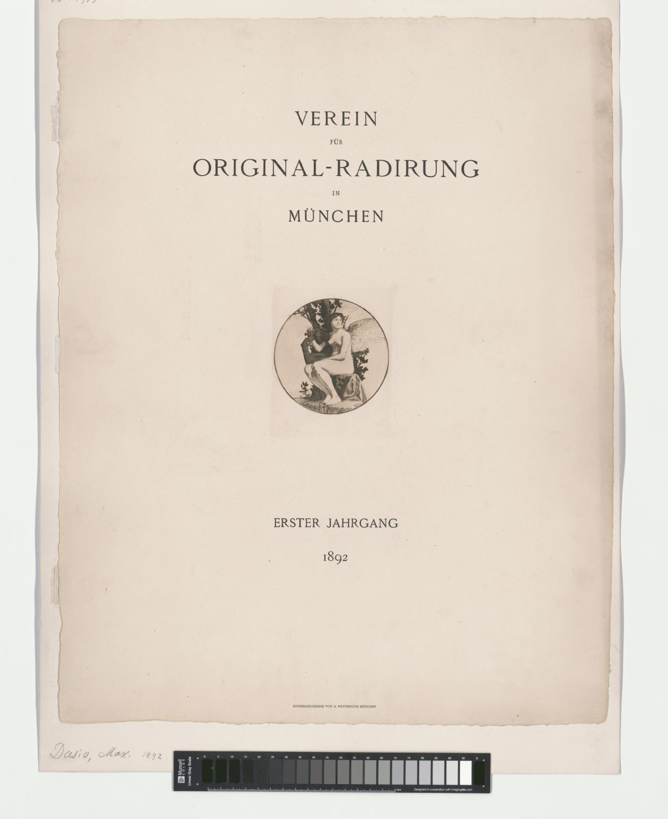 Titelblatt für den ersten Jahrgang: Muse mit Leier an einem Baumstamm sitzend