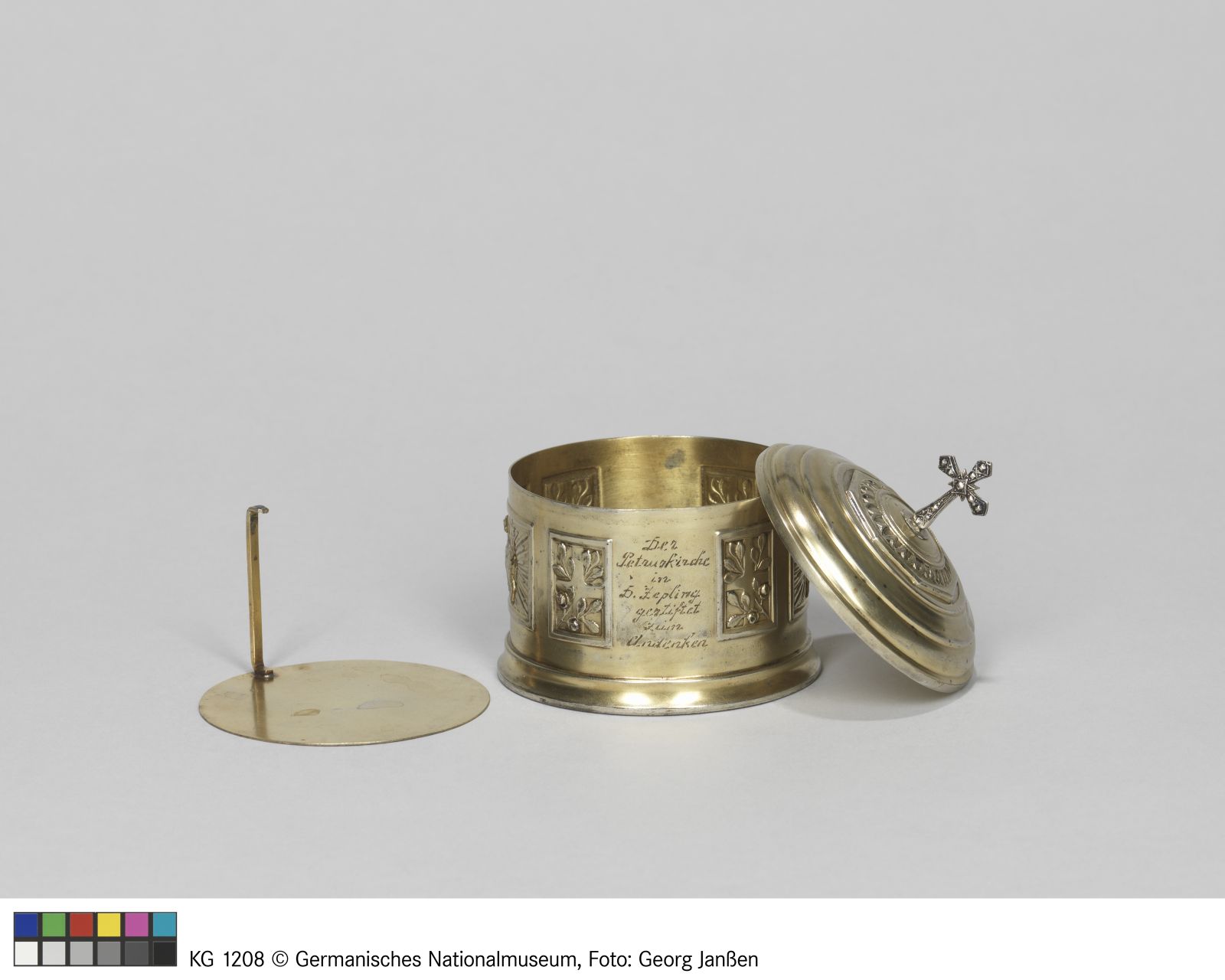 Neusilber (?), graviert, vergoldet