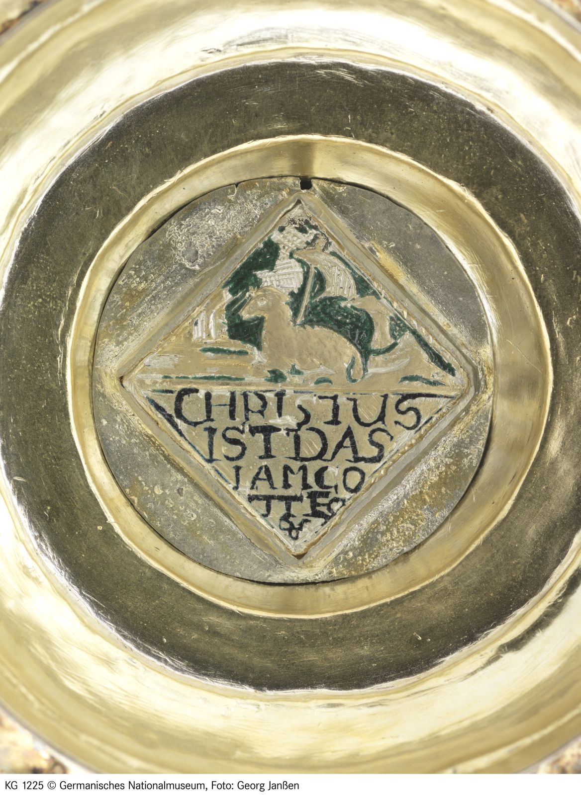 H. m. Deckel 17,6 cm; H. o. Deckel 12,2 cm; Dm. oberer Rand 7,9 cm; Dm. Fuß 9,9 cm