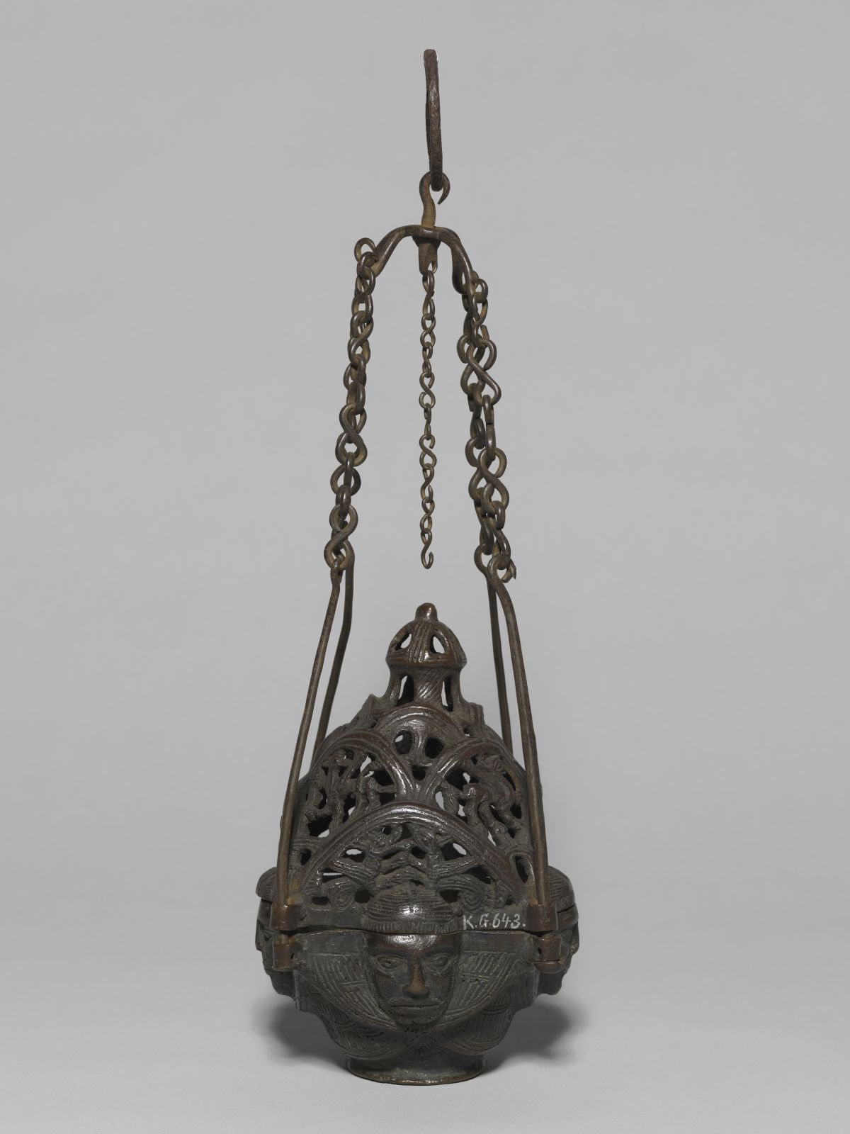Kupferlegierung (Bronze), gegossen, ziseliert; Kette und Stangen Eisen