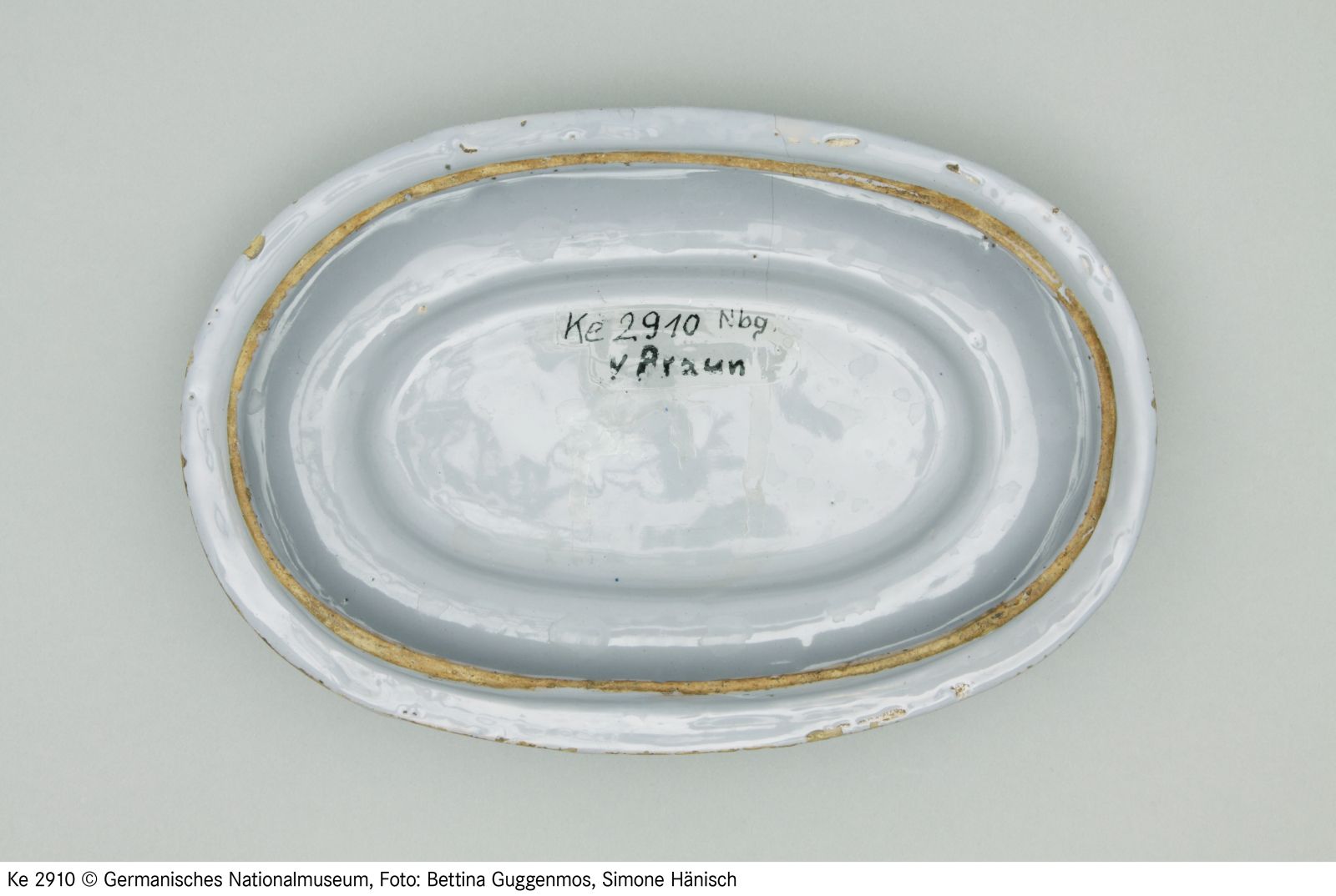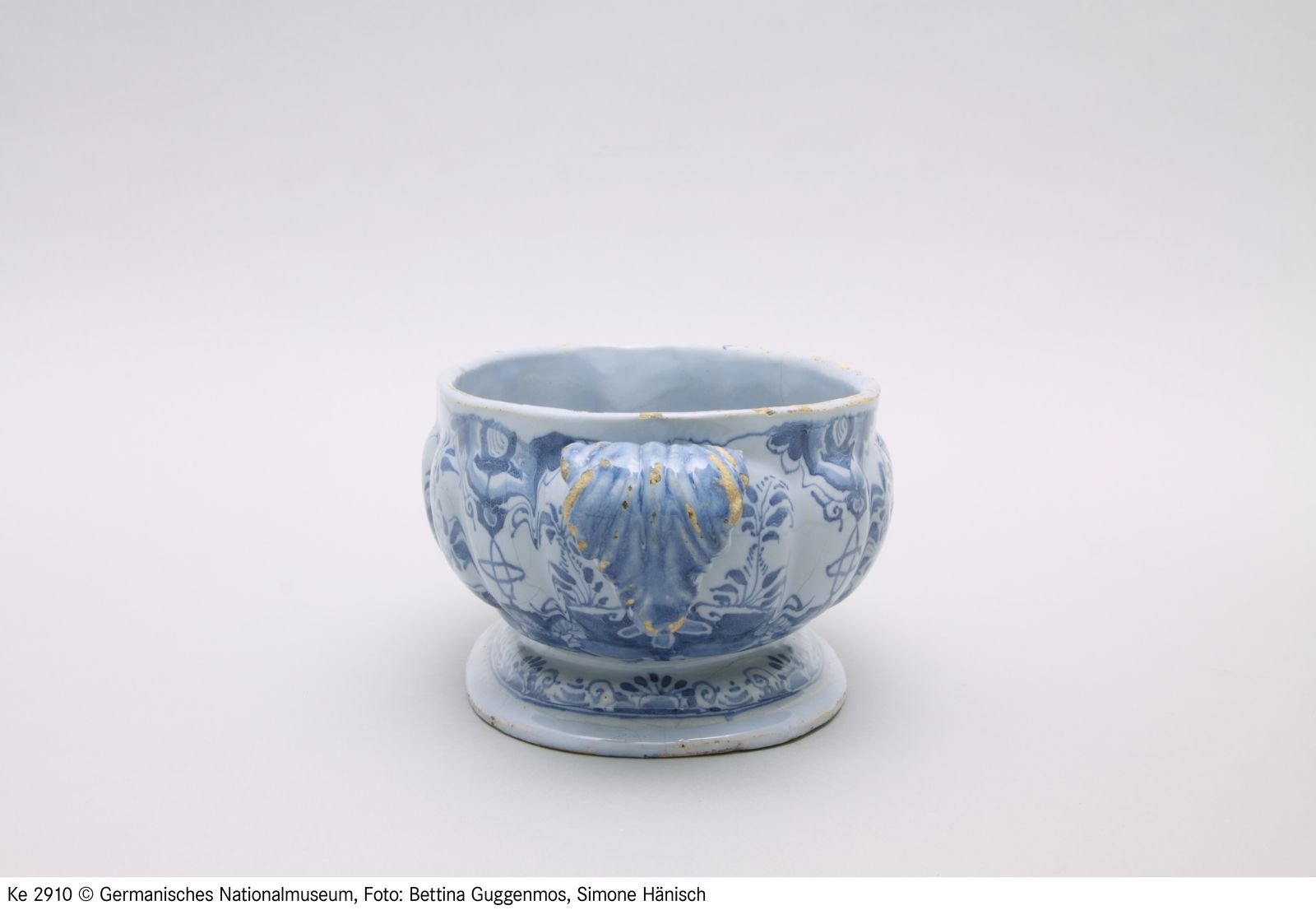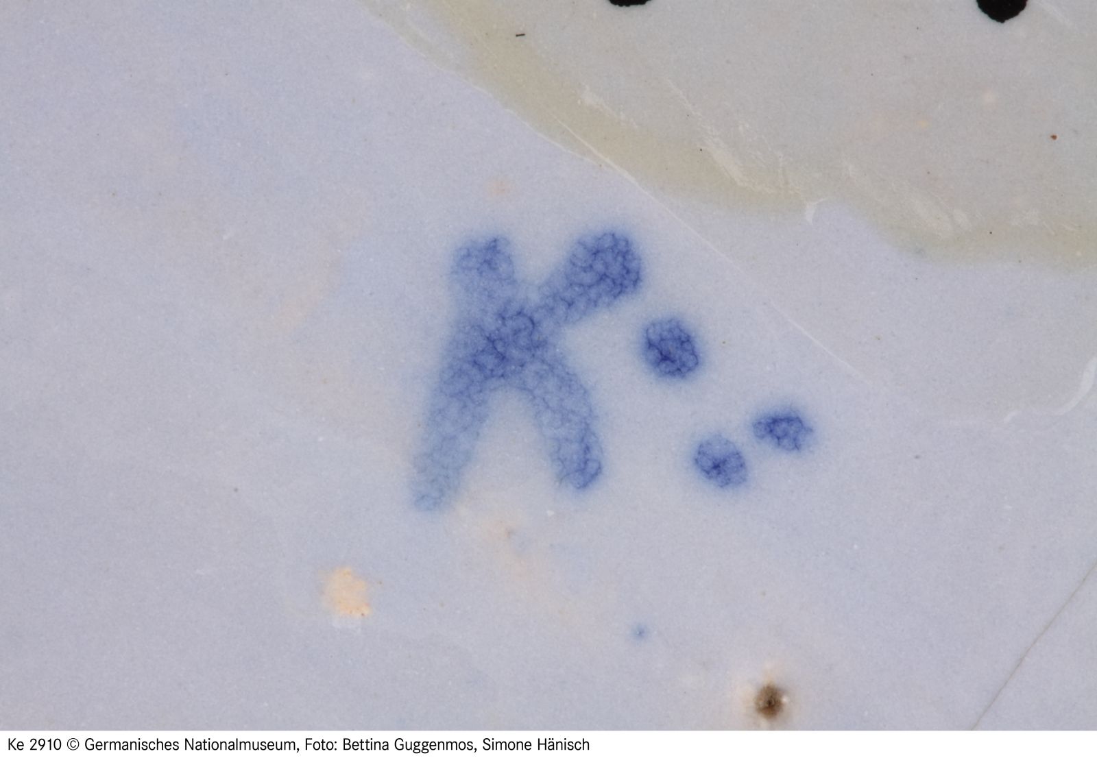 Fayence. Gelblicher Scherben, hellblau glasiert, blau bemalt