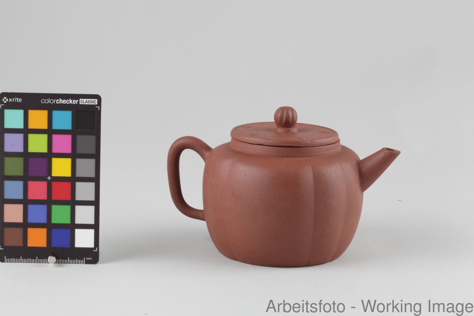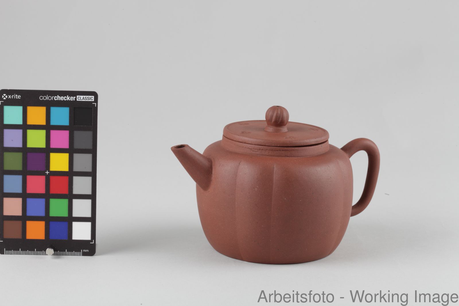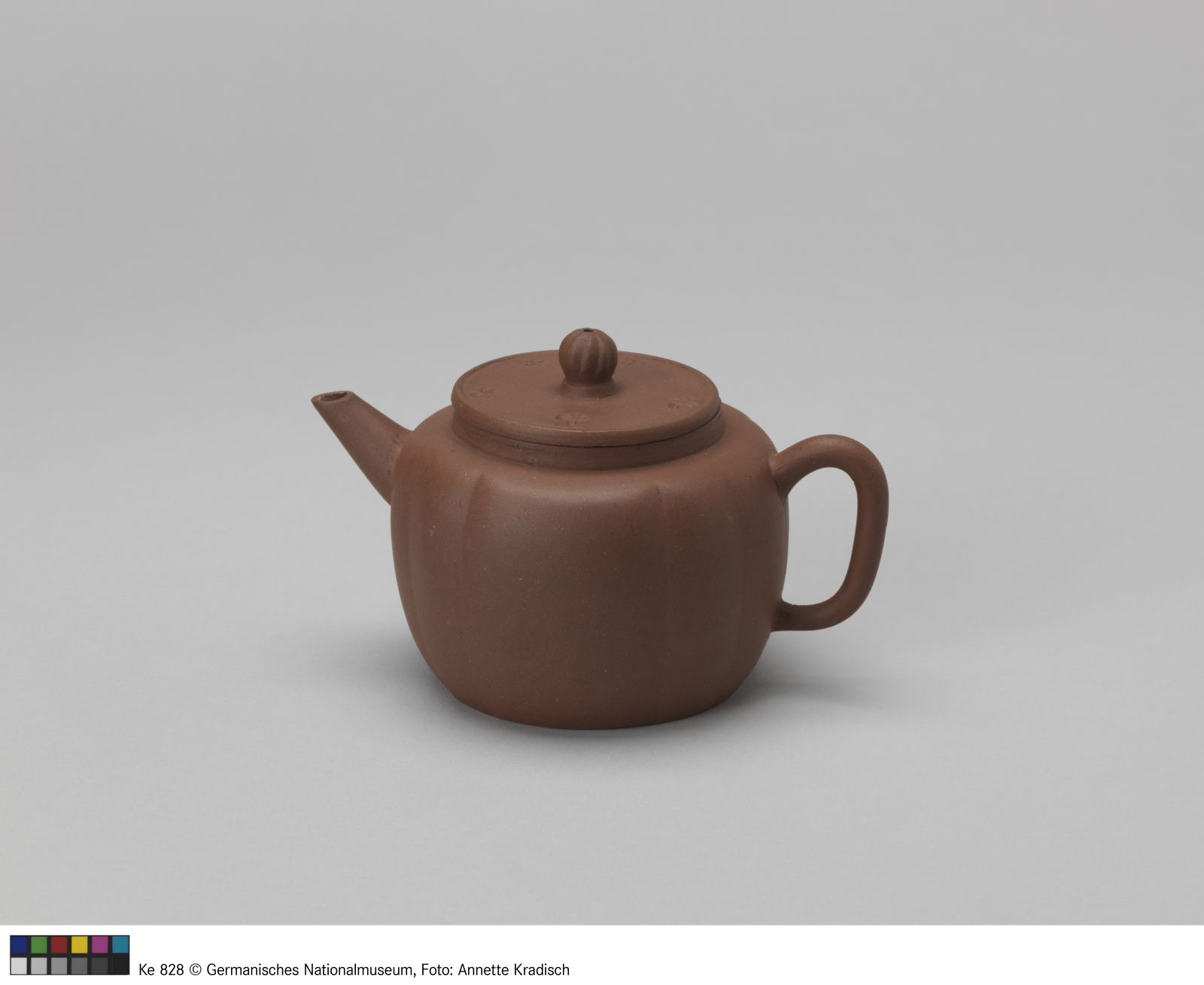 H. m. Deckel 9,7 cm, H. o. Deckel 7,7 cm, Br. 5,5 cm, Dm. 10,4 cm