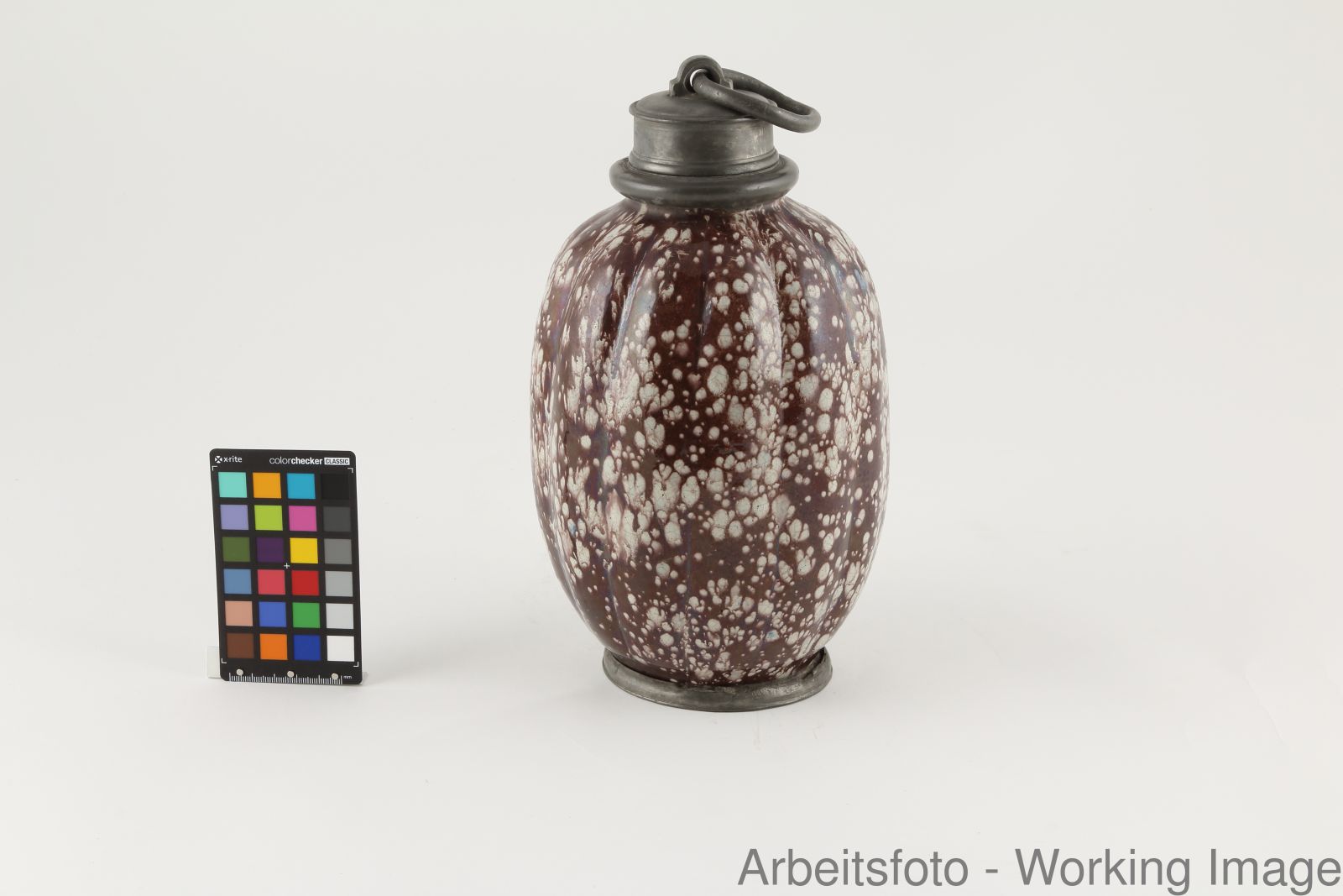 Fayence; Zinnmontierung, zinngefasst, glasiert,