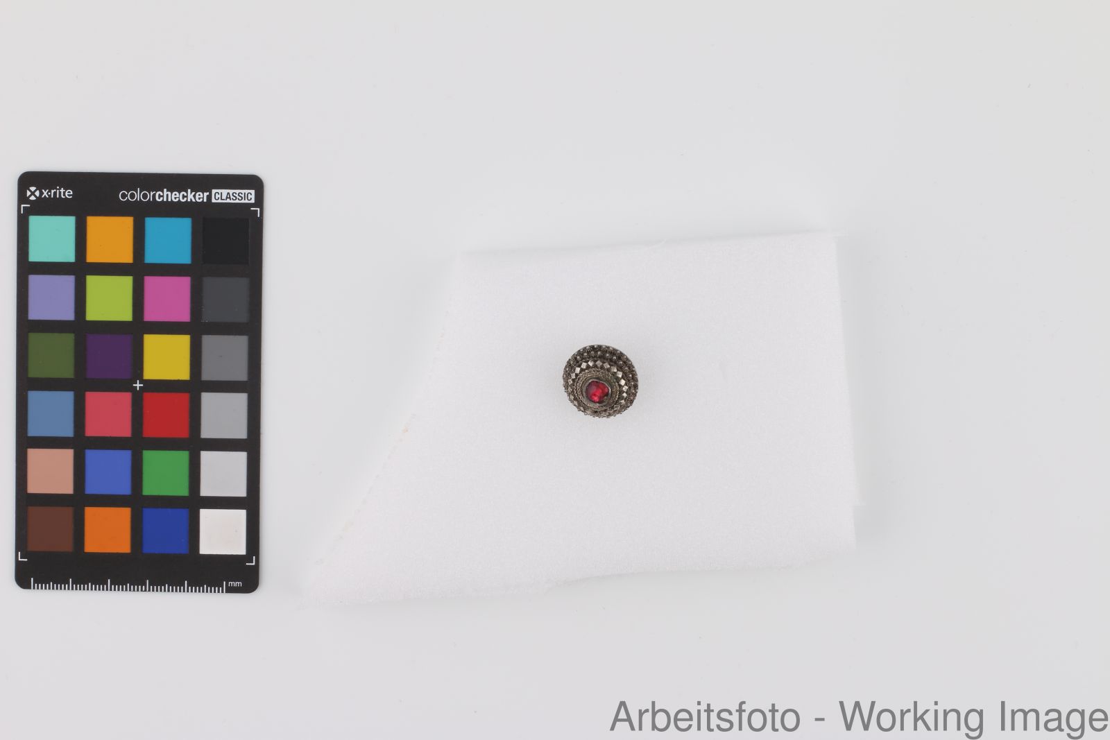 Silber, gepresst, Silberdraht, Glassteine, rot