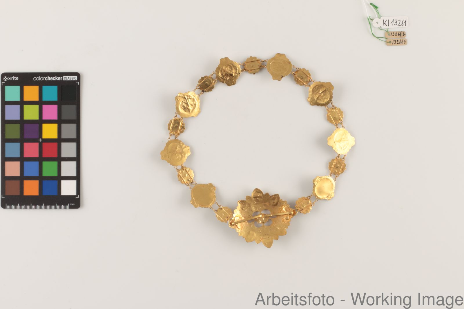Goldblech, Goldfiligran, Glassteine, rot, geschliffen