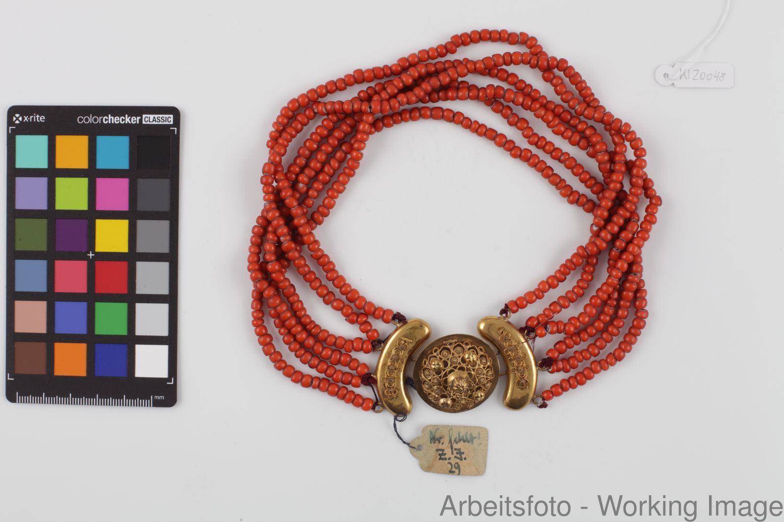 Glasperlen, korallenfarben, Schließe: Silber, vergoldet, Filigran