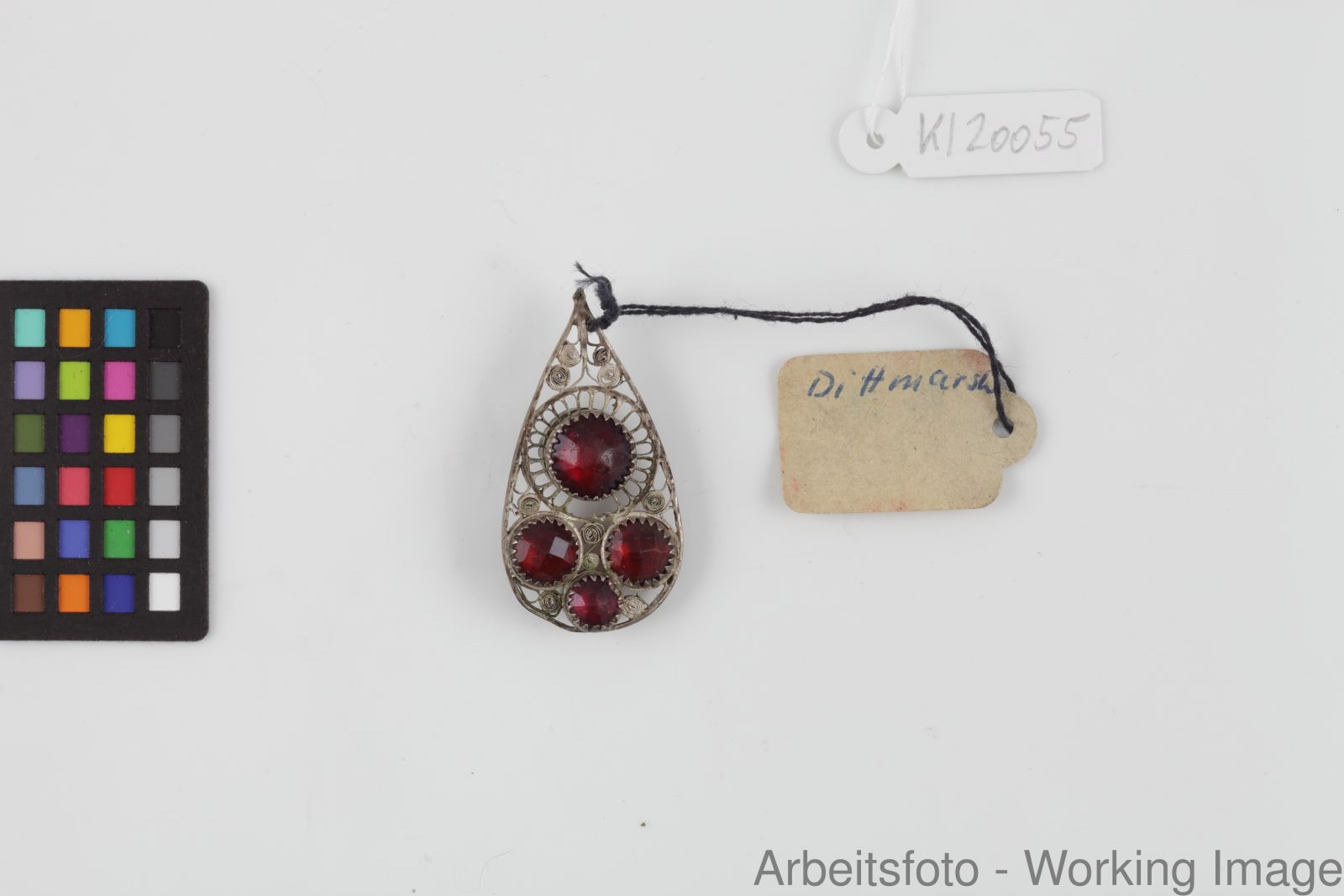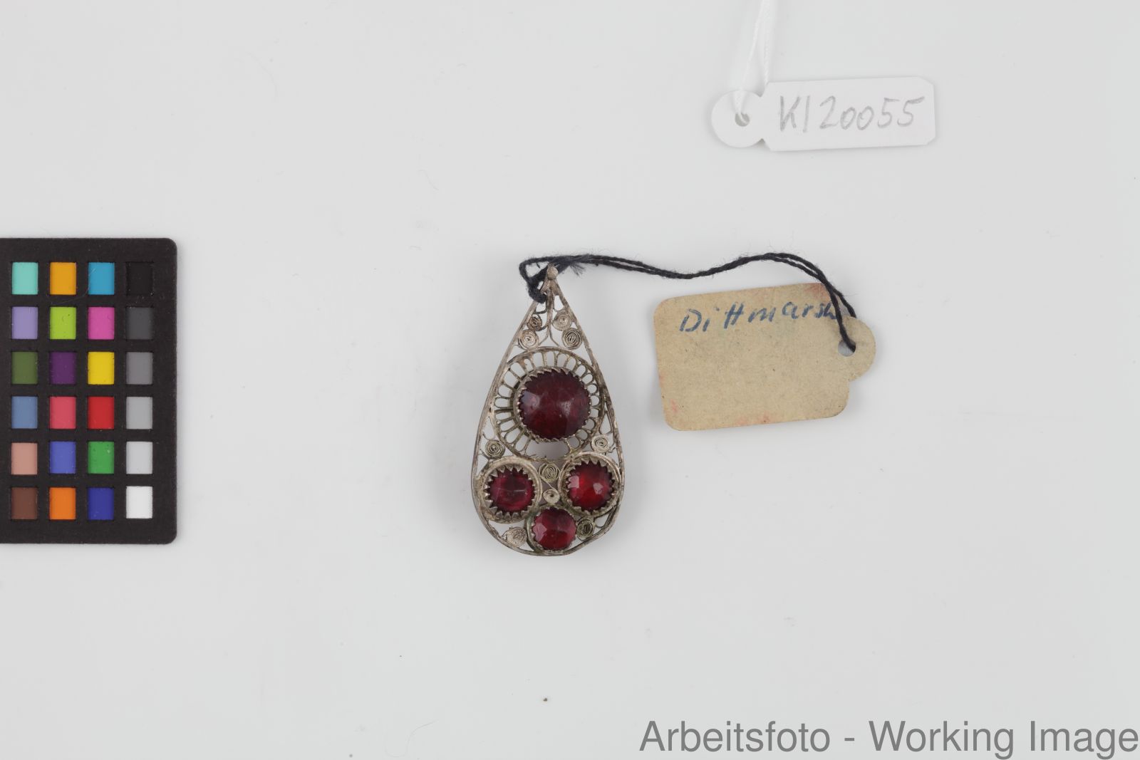 Silber, Silberfiligran, Glassteine, geschliffen, rot
