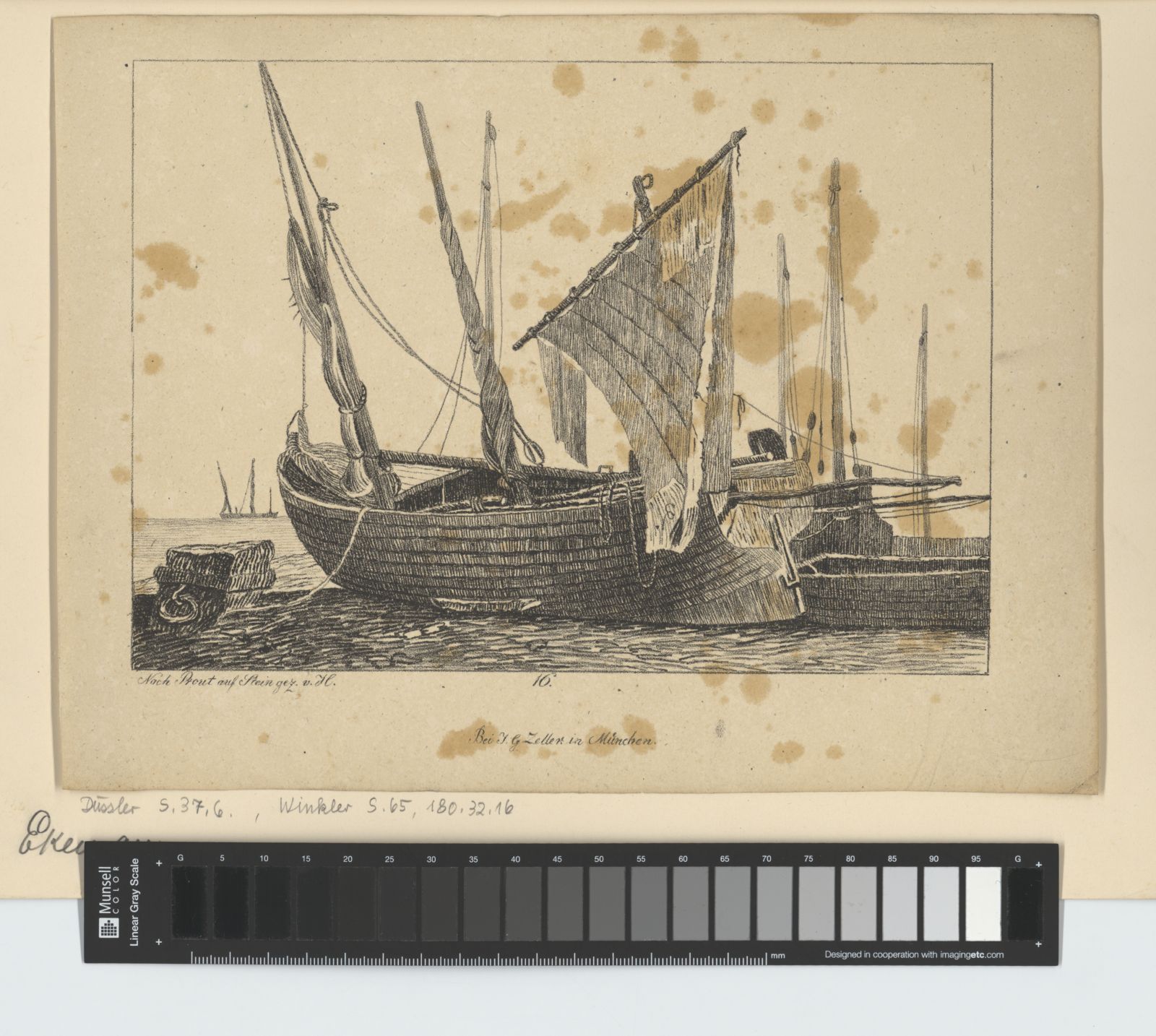 Blatt 16 aus: XVI. Studien von Booten und Landschaften an der Meeresküste (Ankernde Boote)
