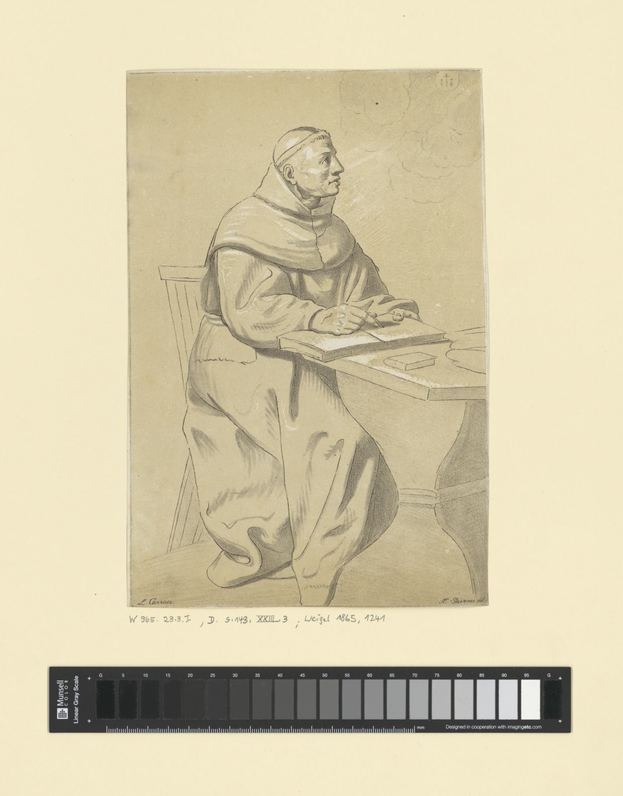 Lithographie (Feder, Kreide) in Schwarz gedruckt mit ockerfarbenem Tonstein