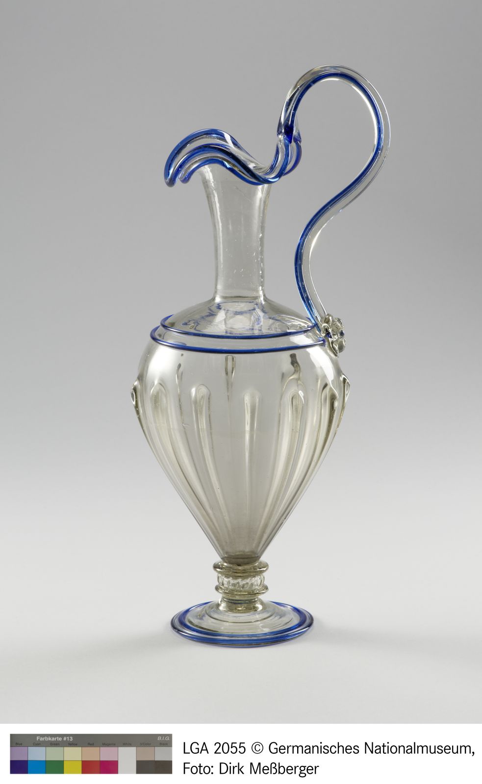 Glas, farblos, blau gerändert