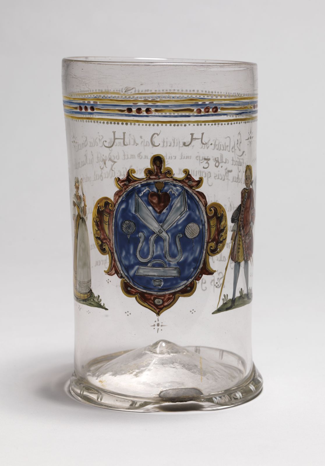 Glas, durchsichtig, bunte Schmelzfarbenbemalung
