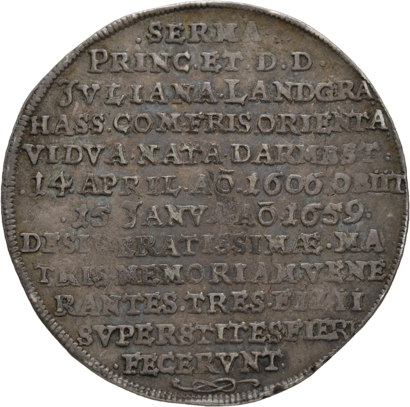 Ostfriesland, Enno Ludwig (1648-1660), 1/2-Sterbetaler auf seine Mutter Juliane v. Hessen-Darmstadt, 1659