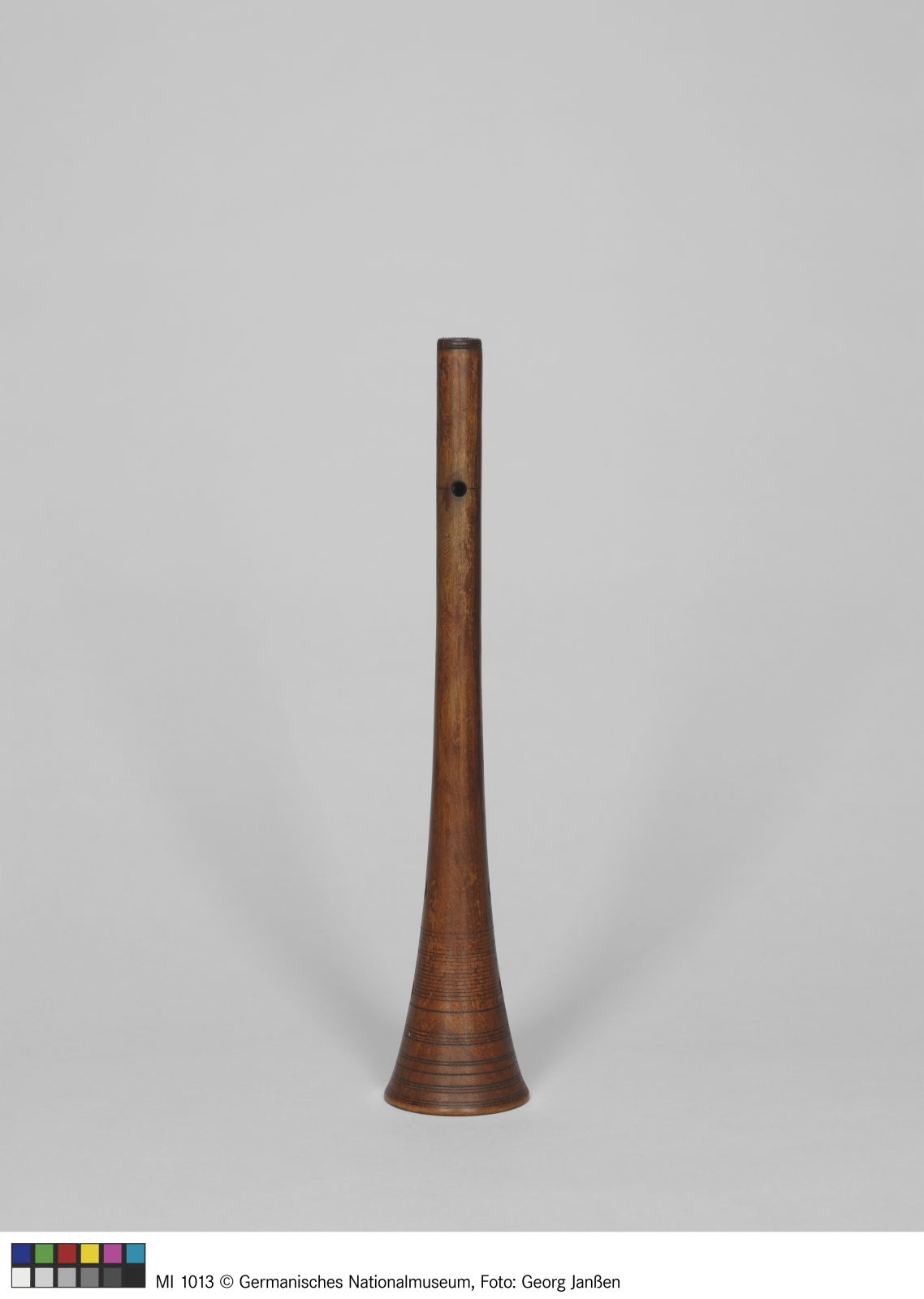 Korpus Obstholz (?), geölt. Rohrblätter Schilf. Hülse Messingblech.