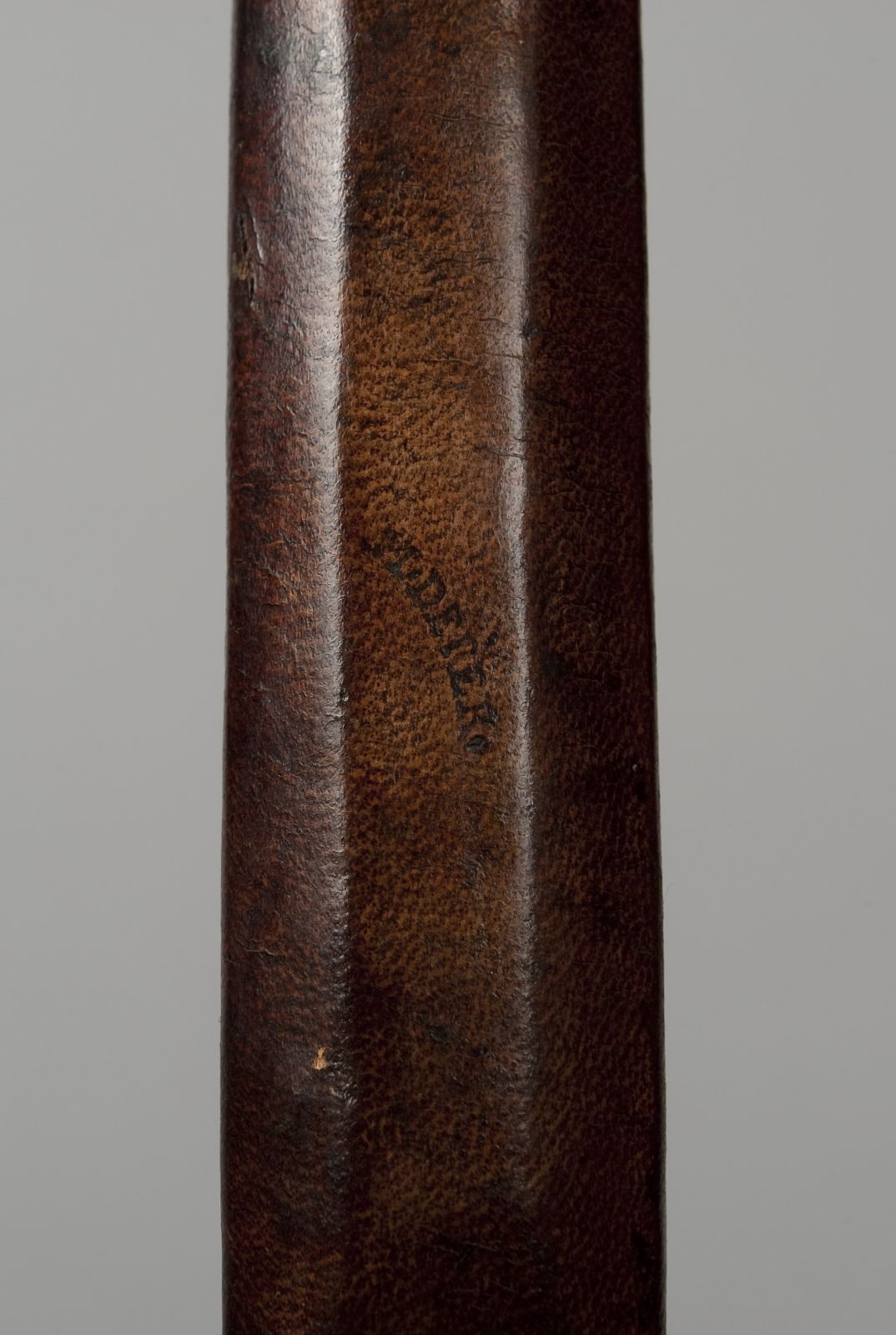 Korpus: Buchsbaum, mit Leder überzogen; Klappenteile: Messing