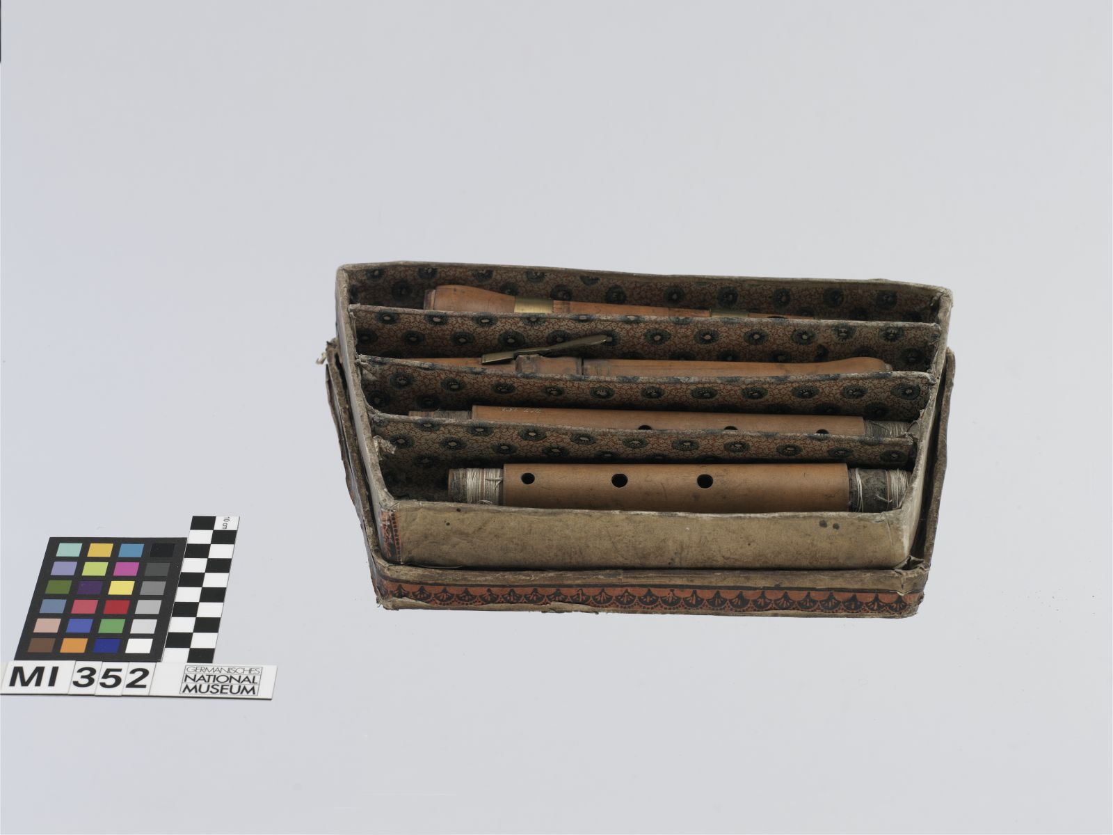 Korpus: Buchsbaum; Kappe: Horn; Zierringe: Messing; Klappe: Messing