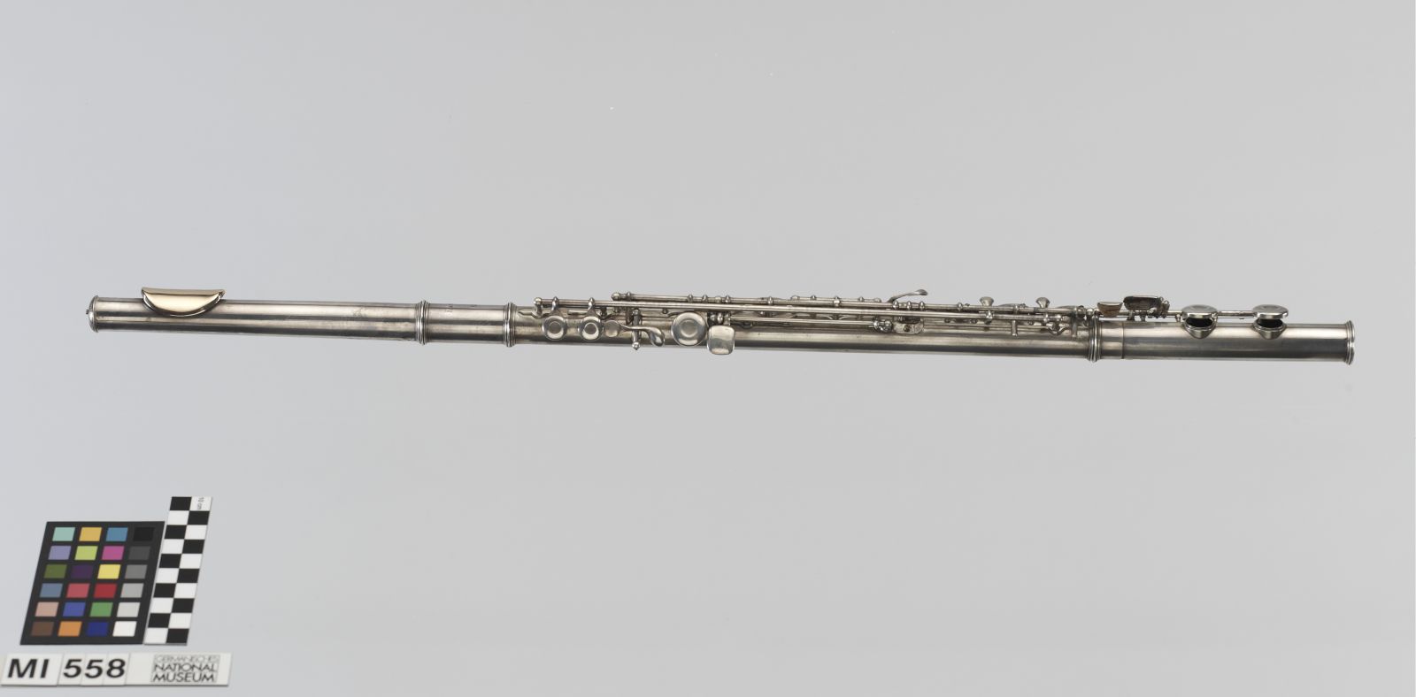 Korpus und Klappen: Silber. Mundlochplatte: Gold.