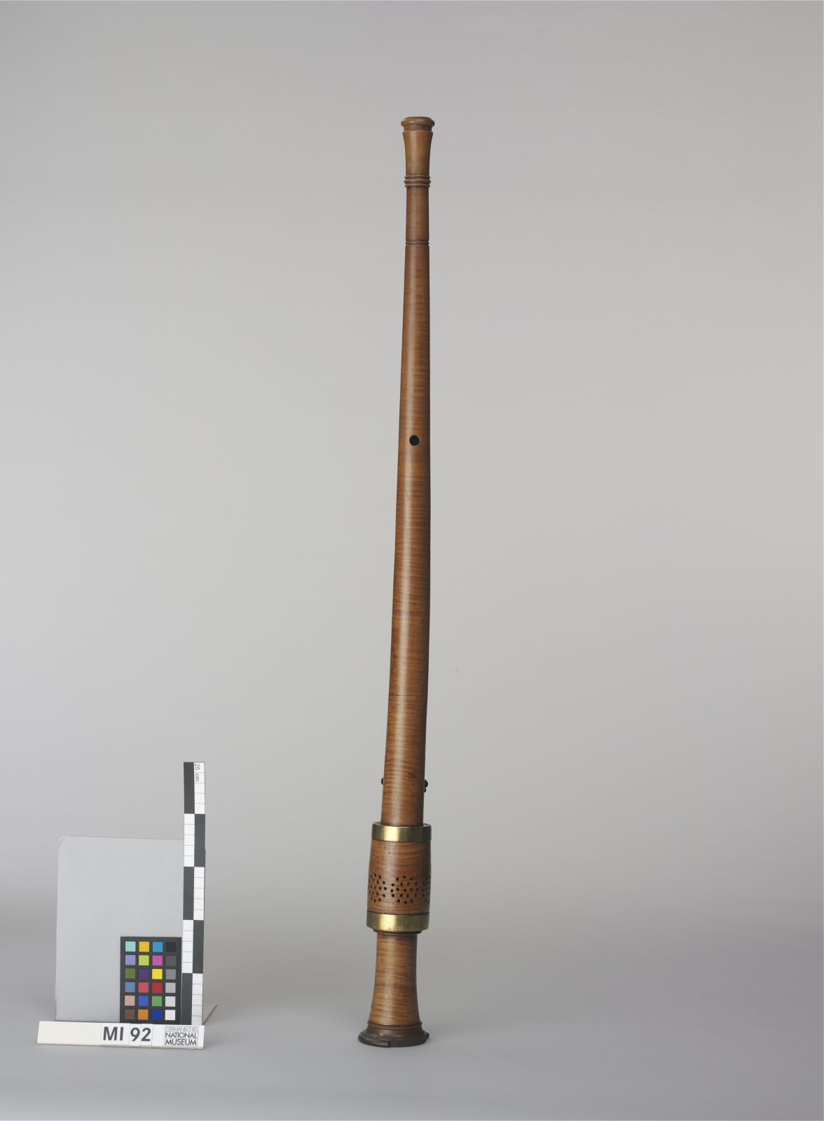 Korpus, Fontanelle und untere Hülse: geflammter Ahorn; obere Hülse: Buchsbaum; Klappenteile und Fontanellenzwingen: Messing