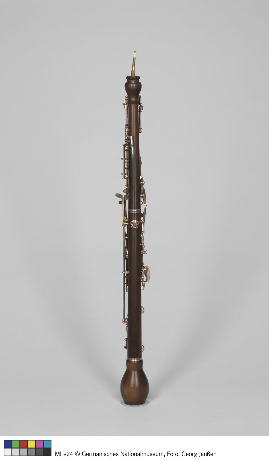 Korpus: Hartholz; Klappen und Zwingen: Neusilber; Zapfenzwingen: Messing