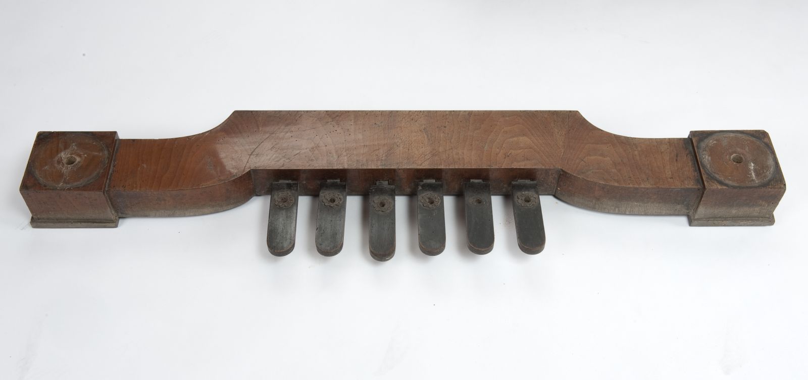 Wände und Deckel: außen mit Nussbaum, innen mit Ahorn furniert; Resonanzboden: Nadelholz; Unterboden: Nadelholz.